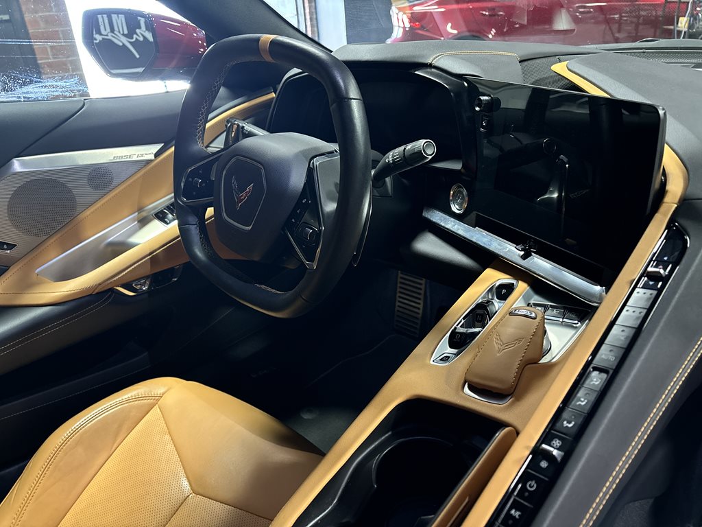 This Corvette is also equipped with the highly desirable 2LT Preferred Equipment Package, which adds a premium level of comfort, technology, and refinement to the already impressive performance platform. Inside, the cabin is finished with heated and ventilated leather-trimmed sport seats, a heated steering wheel, a head-up display, memory seating, and a fully digital driver information center. The driver-focused cockpit wraps around you with premium materials, contrast stitching, and modern design elements that highlight the Corvette’s transition into a true luxury performance vehicle. The advanced infotainment system features an 8 inch touchscreen with Apple CarPlay, Android Auto, Bluetooth connectivity, navigation capability, and a premium Bose Performance Series sound system, creating an interior that is both high-tech and comfortable enough for everyday driving.