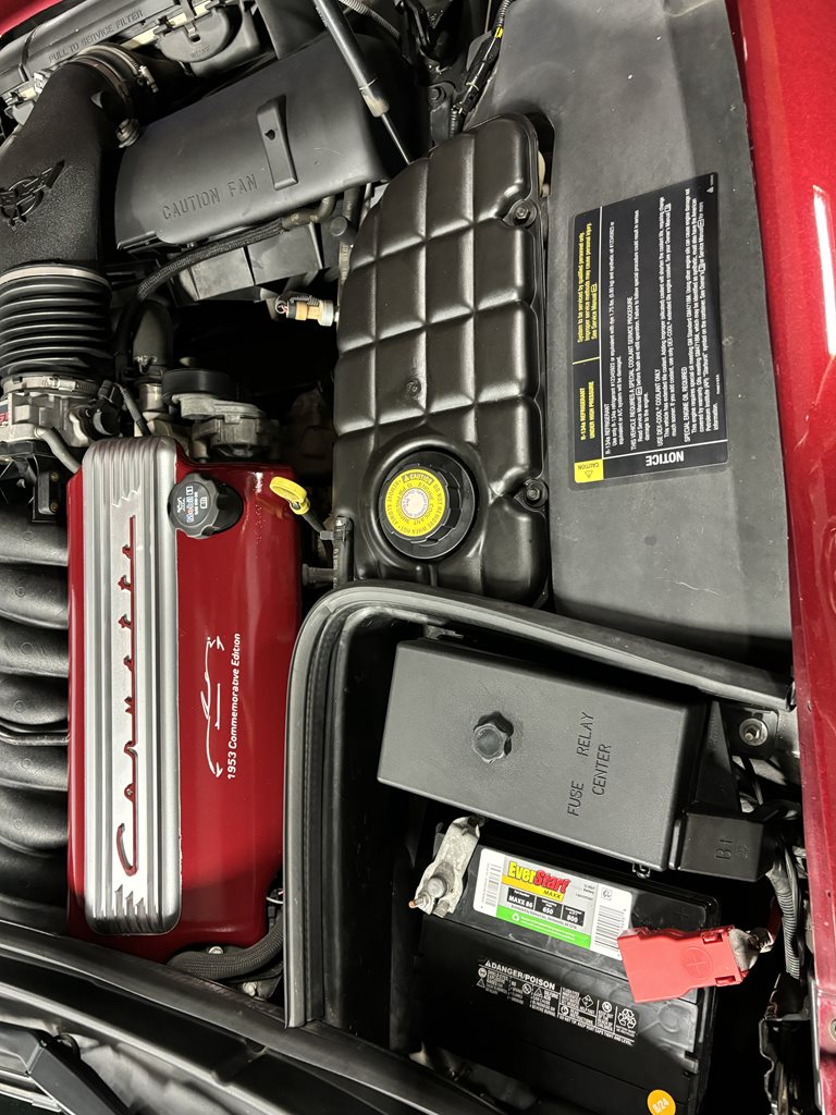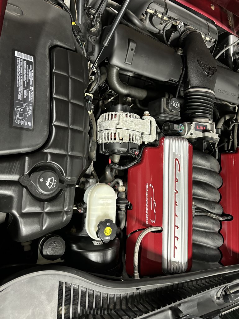This particular example stands out as one of the finest and rarest of its kind. It is a one-owner vehicle with a clean Carfax and just 27,477 original miles, meticulously maintained and garage-kept since new. Finished in the iconic 50th Anniversary Red Metallic over a Shale leather interior, it captures both elegance and performance in a timeless package. Even more exceptional, this car is equipped with the desirable 6-speed manual transmission, making it one of only a handful of 53-03 conversions produced with a manual gearbox. Adding further distinction, it features the optional fuel rail covers, a coveted and rarely seen detail on Anniversary models. Included with the vehicle are extensive photos and a contemporaneous blog post written by the original owner, documenting the history and AAT conversion process in rich detail.