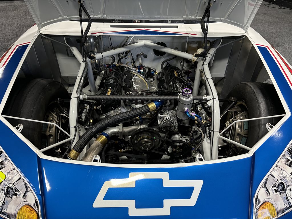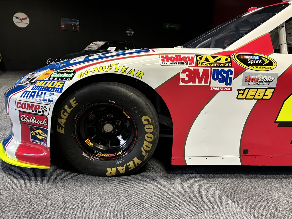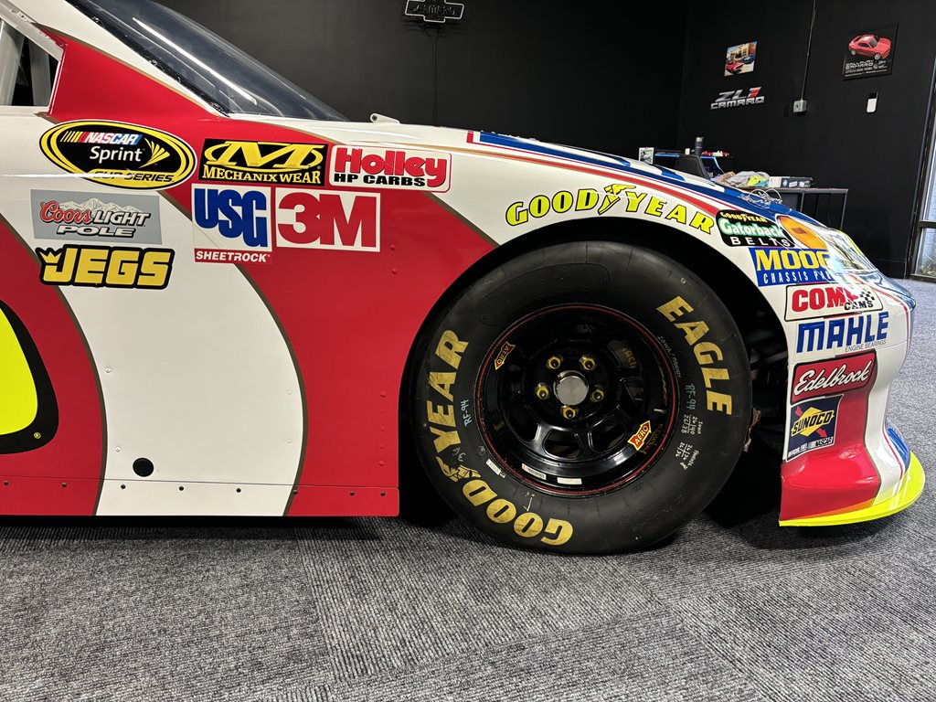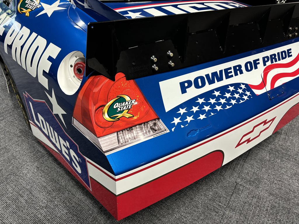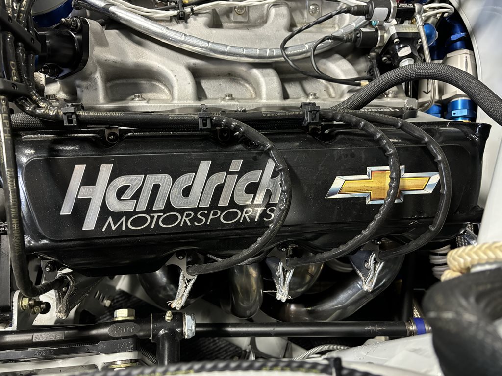 The car sports the legendary “Power of Pride” livery, the paint scheme used during its last race. Since its last race in 2011, the car has been meticulously restored by the experts at Hendrick. Unlike most “look-a-likes” and “show cars” this is not an empty roller or crate motor. HMS 48-590 sports a real, Hendrick built R07 NASCAR motor, as it did when it raced. This thundering 850+ hp monster redlines at over 9,000 RPMs. The exhaust is dumped into header collectors and exits through “y side exit” exhaust. The R07 powerplant delivers its power to the wheels through a period correct, 4-speed, H-pattern transmission. The power is put to the ground using race spec Goodyear ‘Billboard’ tires.