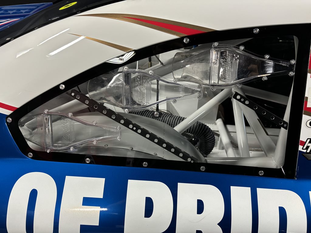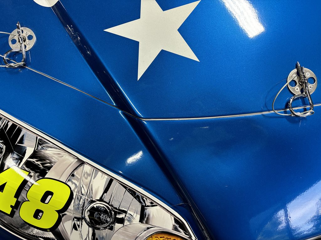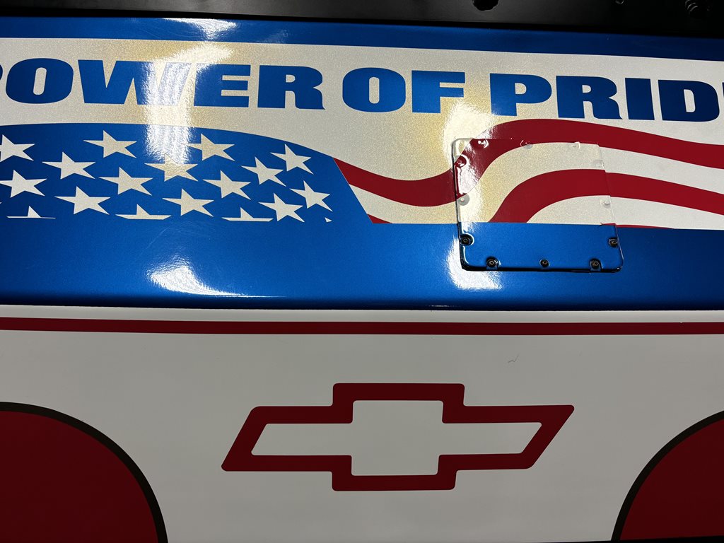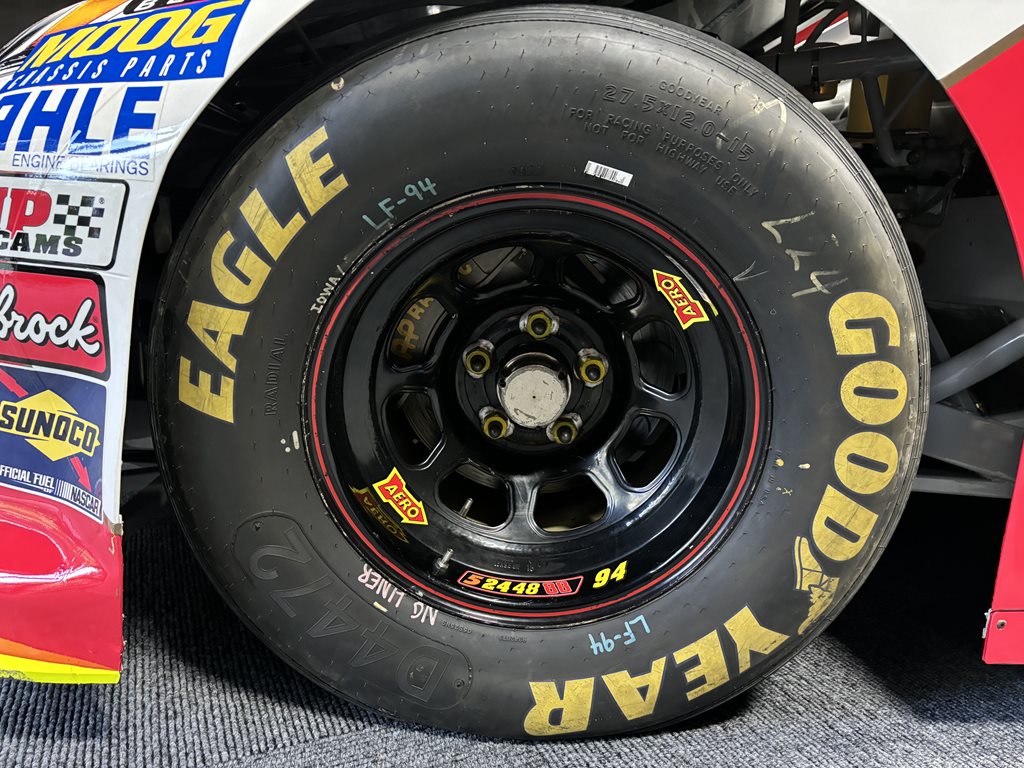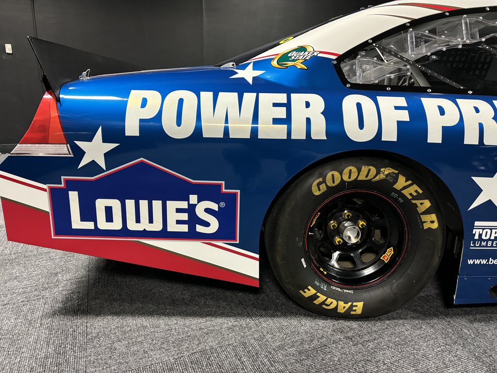The car sports the legendary “Power of Pride” livery, the paint scheme used during its last race. Since its last race in 2011, the car has been meticulously restored by the experts at Hendrick. Unlike most “look-a-likes” and “show cars” this is not an empty roller or crate motor. HMS 48-590 sports a real, Hendrick built R07 NASCAR motor, as it did when it raced. This thundering 850+ hp monster redlines at over 9,000 RPMs. The exhaust is dumped into header collectors and exits through “y side exit” exhaust. The R07 powerplant delivers its power to the wheels through a period correct, 4-speed, H-pattern transmission. The power is put to the ground using race spec Goodyear ‘Billboard’ tires.