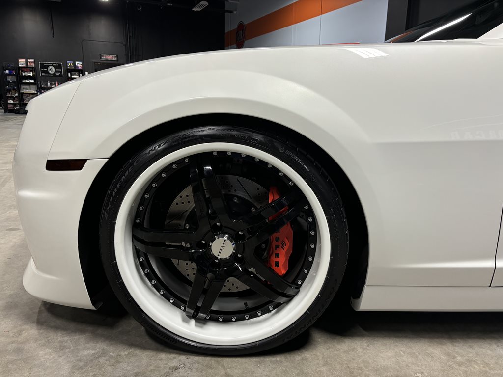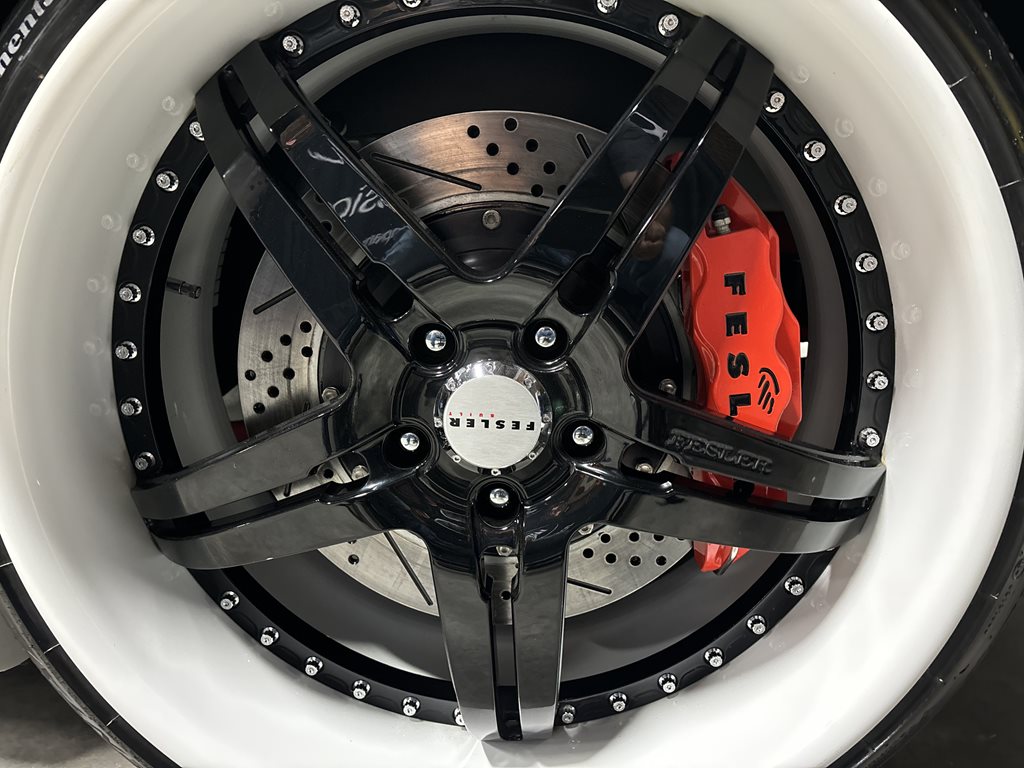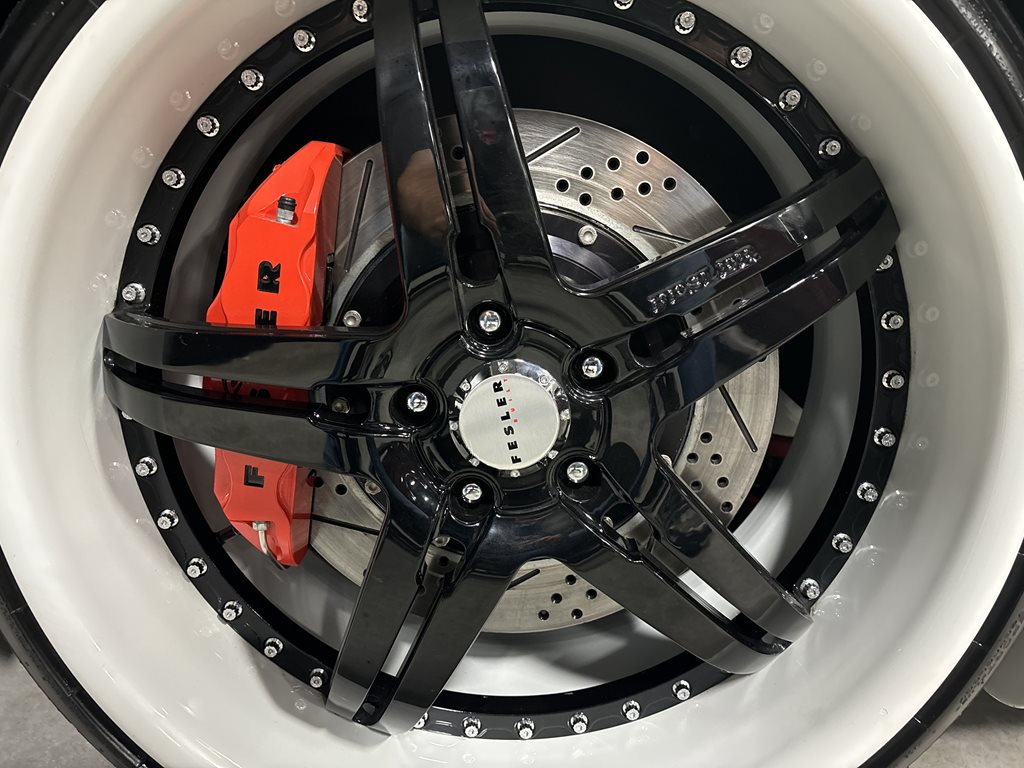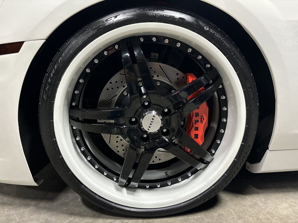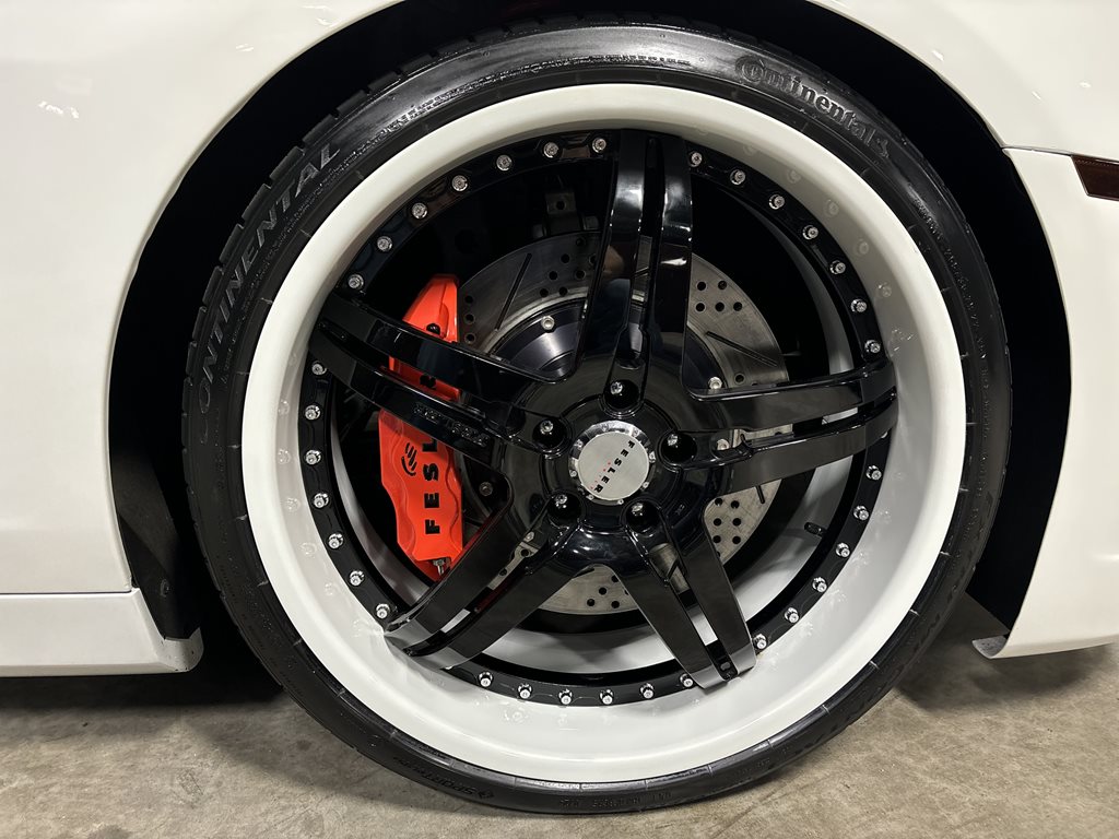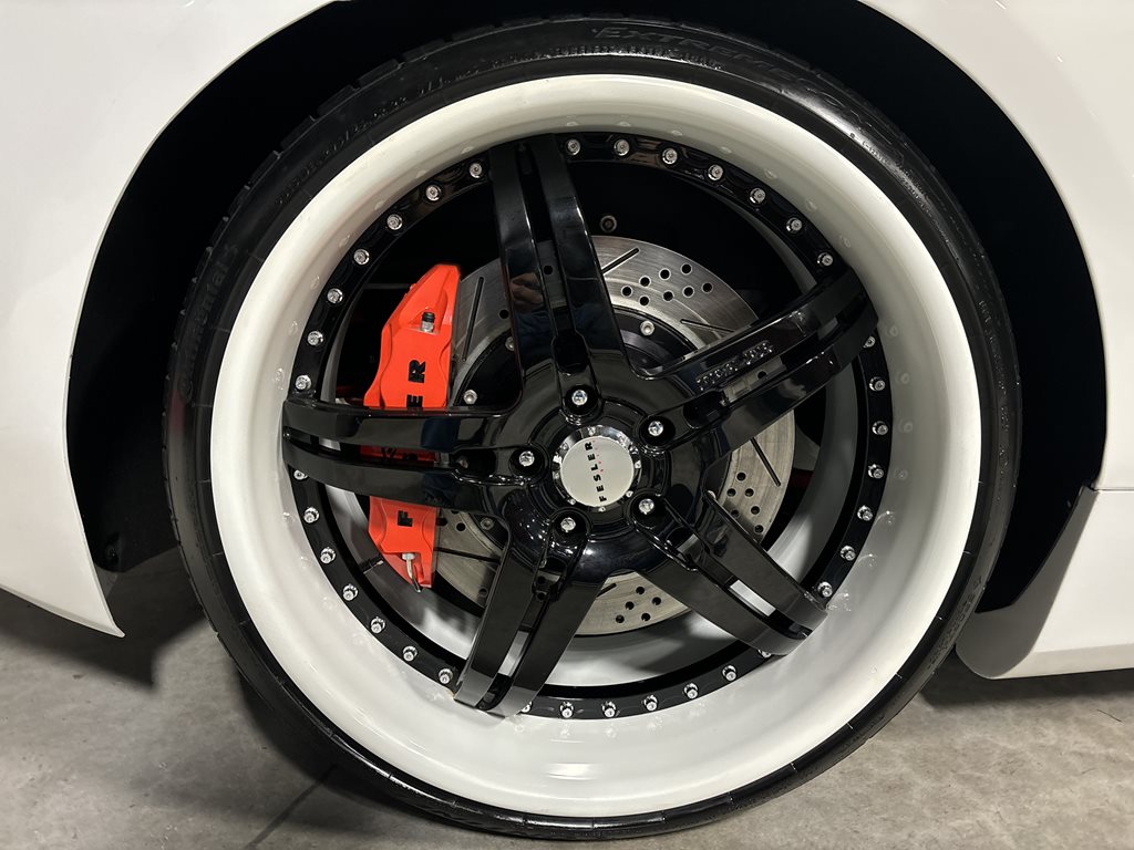 The car rolls on 3-piece Asanti FS-914 forged wheels, measuring 22×9 in front and 22×10.5 in the rear, wrapped in Continental ExtremeContact DWS tires (265/30ZR22 front, 295/25ZR22 rear). The large-diameter forged wheels fill the arches cleanly and work with the lowered stance to deliver crisp response without sacrificing the car’s grand-touring composure.