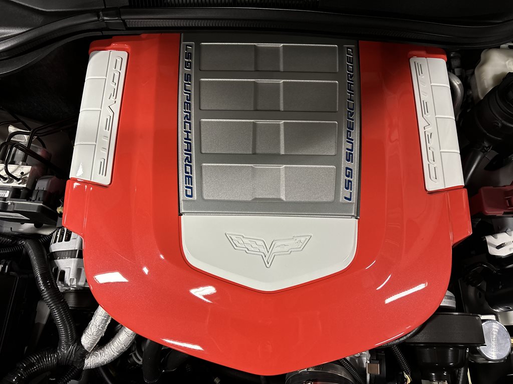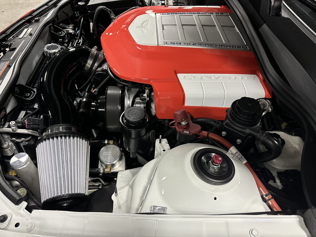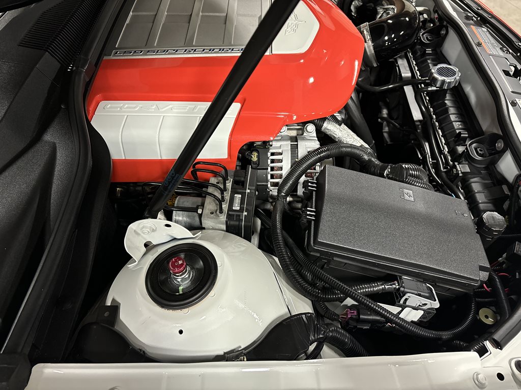 Under the hood sits the LS9 6.2-liter (376 cid) supercharged V8 with 9.1:1 compression, forged internals, and high-flow cylinder heads. A custom intake and long-tube 1 7/8-inch headers feed a free-breathing exhaust with 3-inch collectors, high-flow catalysts, and a B&B 3-inch system. Fueling is upgraded with dual in-tank pumps and LS9-spec injectors, and the engine management is recalibrated so the swap behaves like a factory installation. In the MotorTrend feature, this exact car recorded roughly 705 rwhp and 680 rwtq, tuned conservatively for durability on pump fuel.