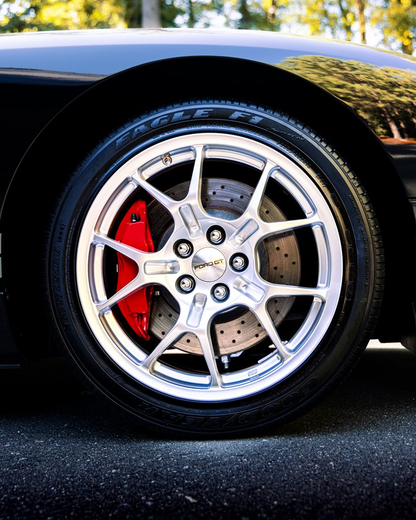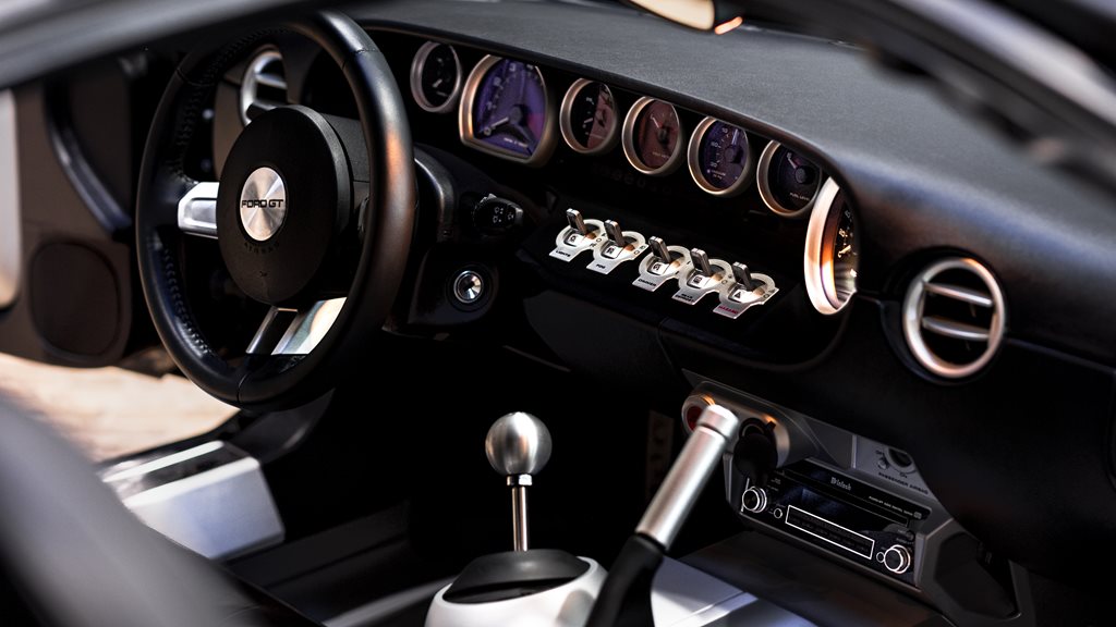 Under the hood, this Ford GT is powered by a 5.4-liter supercharged V8 engine, delivering an exhilarating 550 horsepower and 500 lb-ft of torque. Mated to a 6-speed manual transmission, this supercar provides a raw and engaging driving experience, offering blistering acceleration and exceptional precision — all while staying true to the spirit of the original GT40. The mid-mounted engine and lightweight aluminum chassis deliver superb balance, ensuring an exhilarating and responsive drive whether on the road or track.