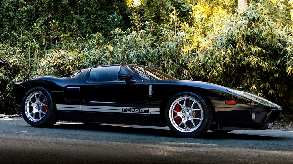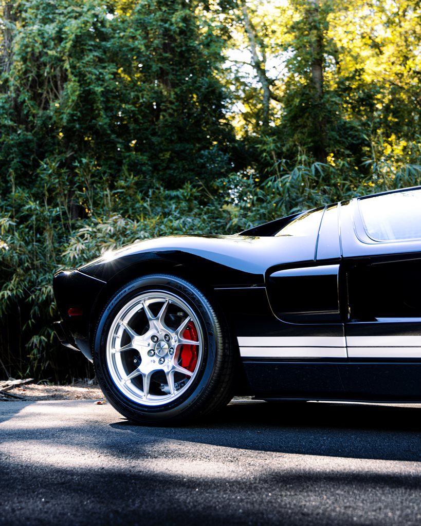 Presenting a stunning 2005 Ford GT in black with striking silver racing stripes, a true homage to the legendary GT40. With fewer than 5,000 miles on the odometer, this low-mileage example of the modern reinterpretation of the iconic GT40 is an extraordinary find for any enthusiast or collector.