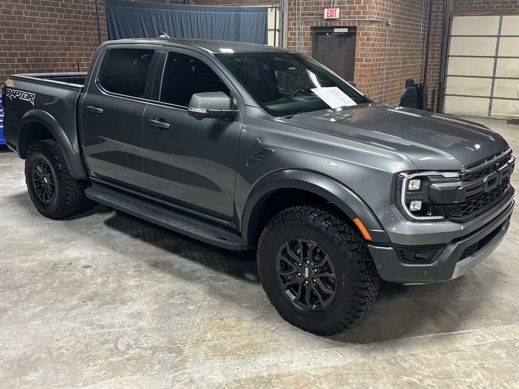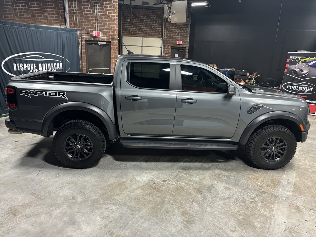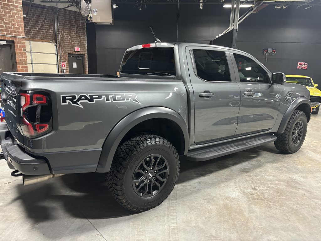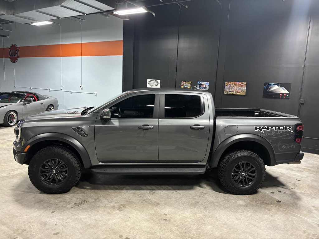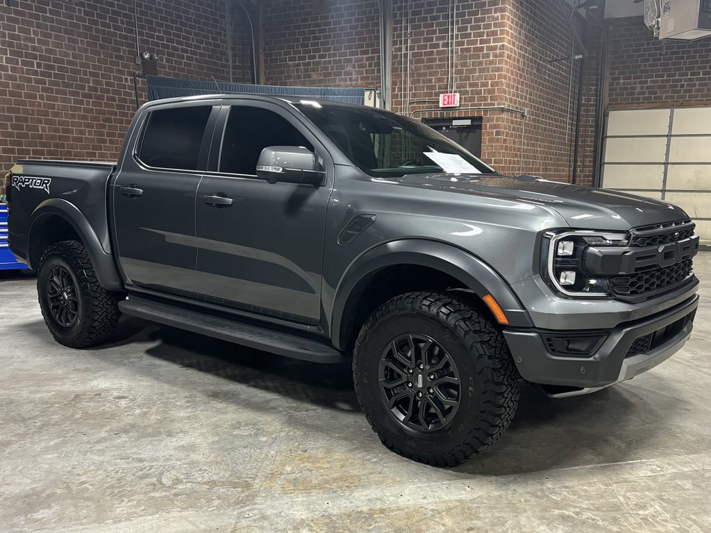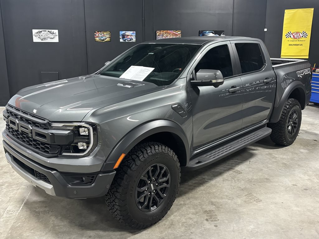 Experience the thrill of the 2024 Ford Ranger Raptor SuperCrew 4WD, practically brand new with just under 4,500 miles on the odometer and finished in a striking Carbonized Gray Metallic that’s complemented by matching gray-painted alloy wheels.