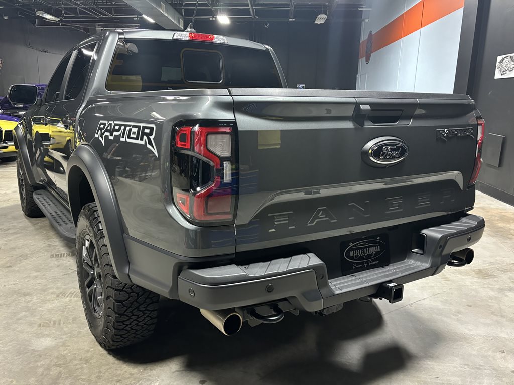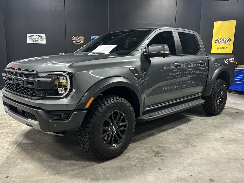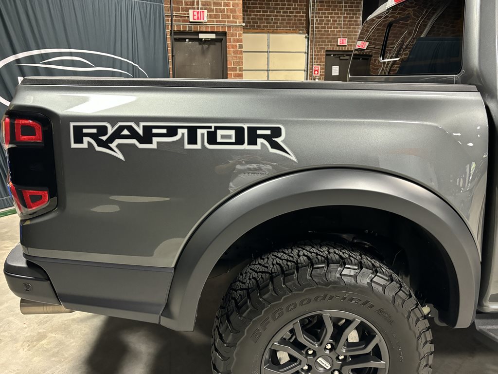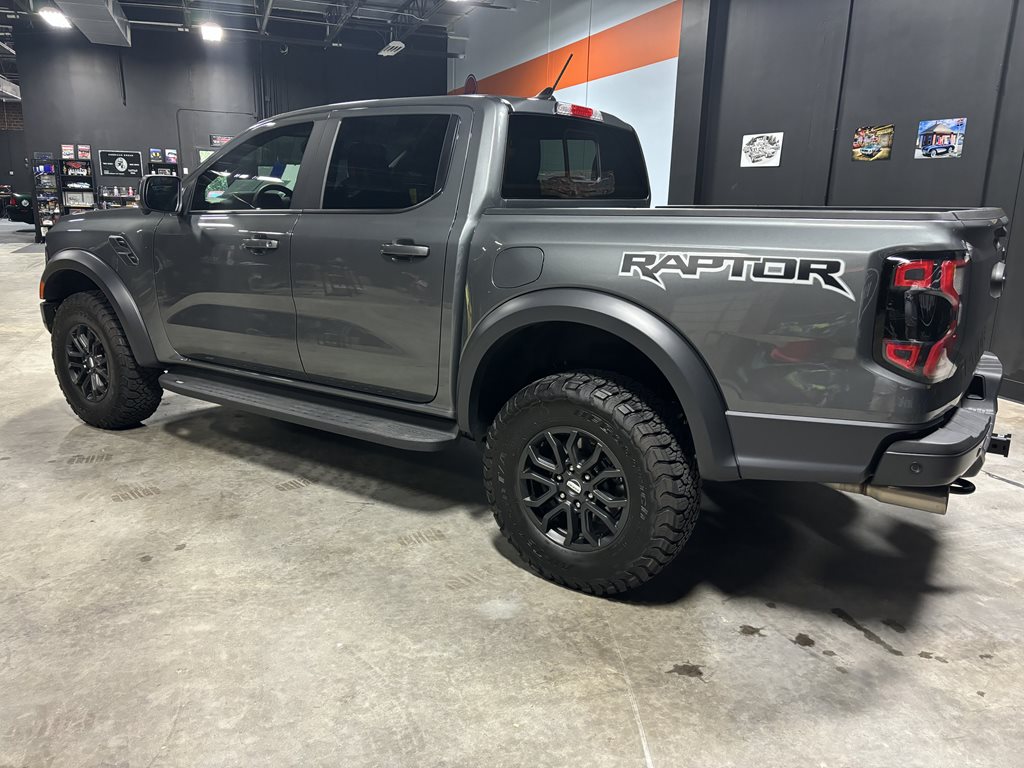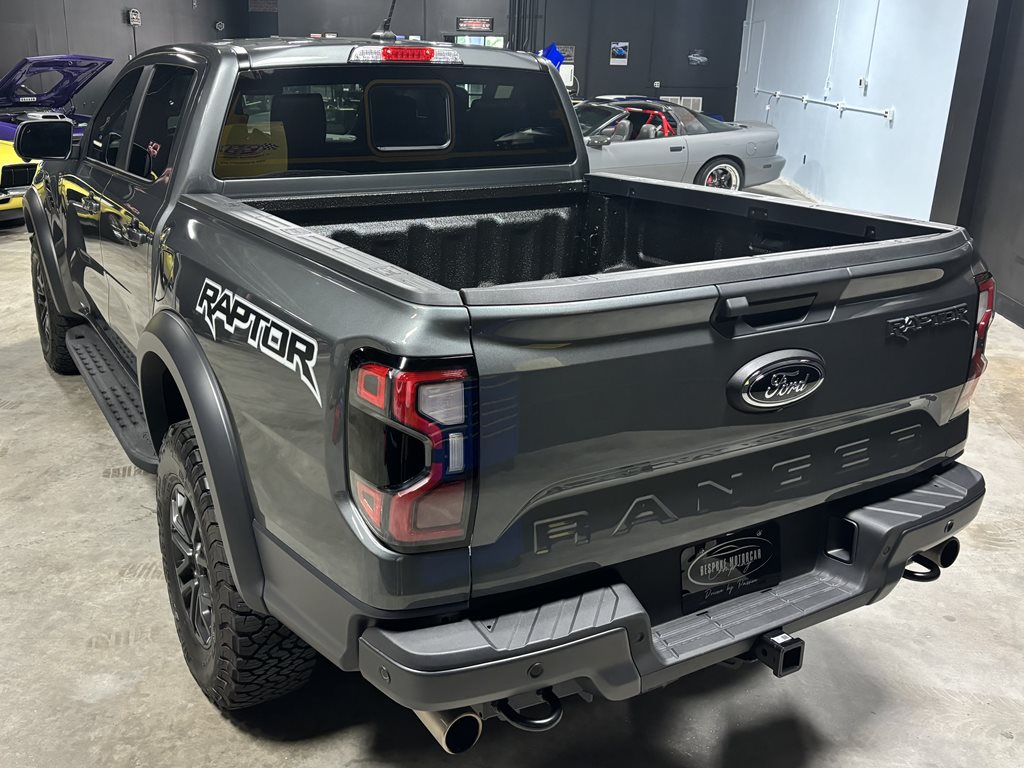 Experience the thrill of the 2024 Ford Ranger Raptor SuperCrew 4WD, practically brand new with just under 4,500 miles on the odometer and finished in a striking Carbonized Gray Metallic that’s complemented by matching gray-painted alloy wheels.