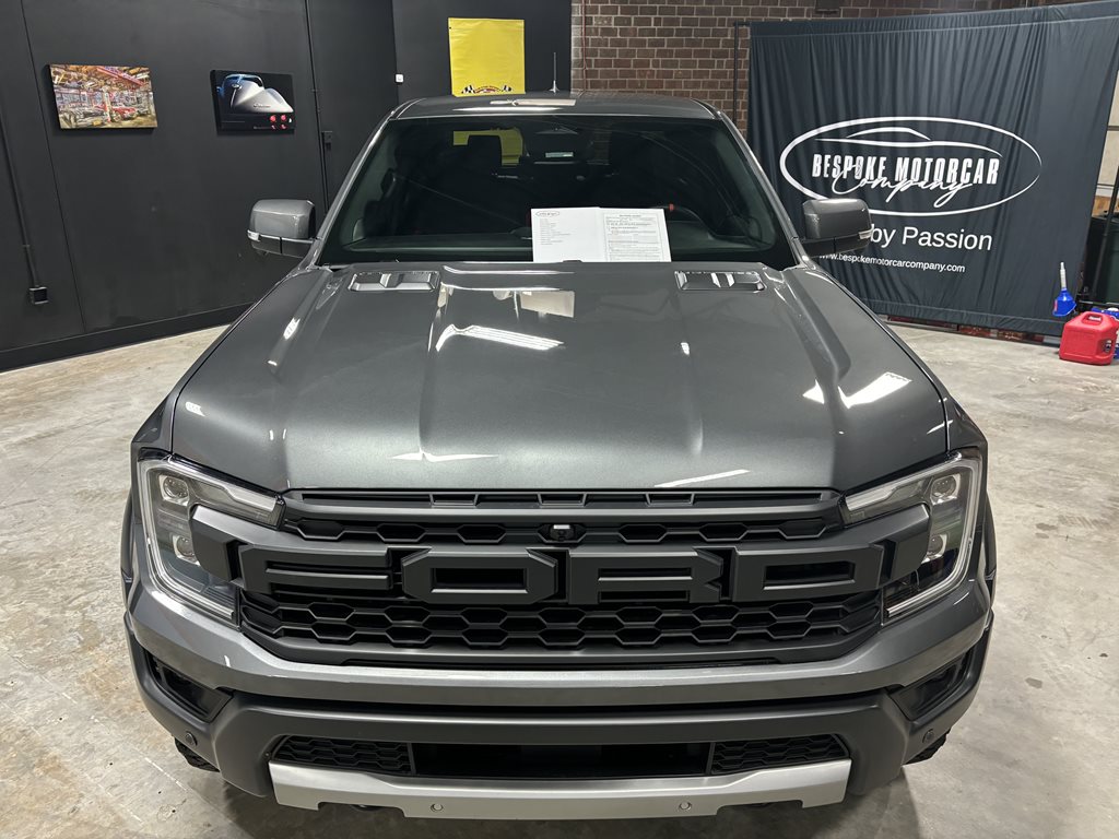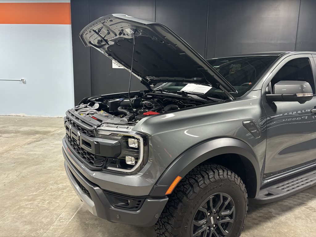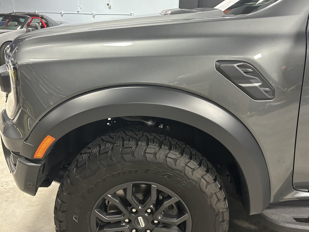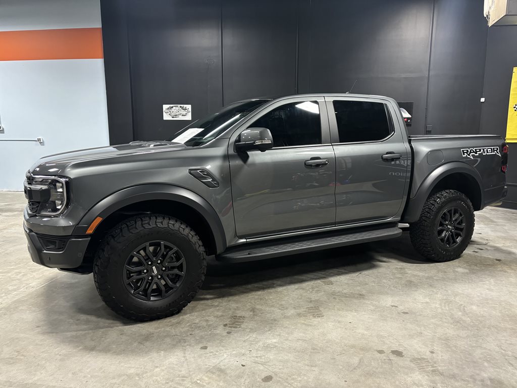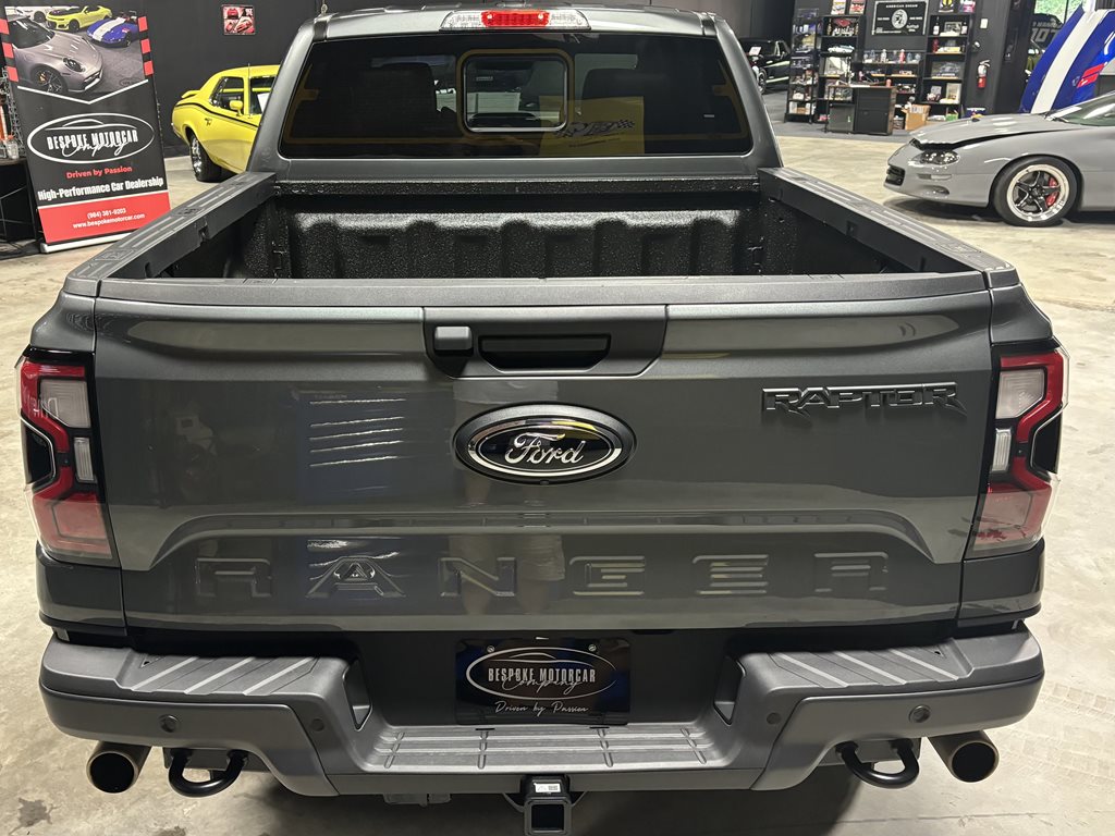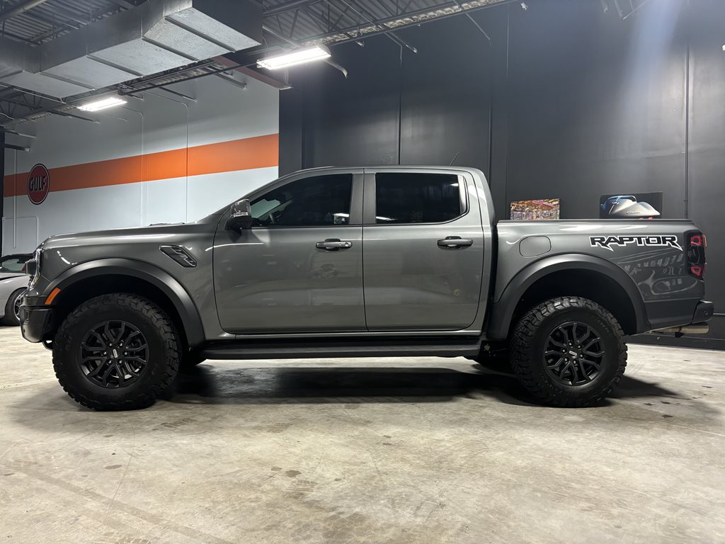 Experience the thrill of the 2024 Ford Ranger Raptor SuperCrew 4WD, practically brand new with just under 4,500 miles on the odometer and finished in a striking Carbonized Gray Metallic that’s complemented by matching gray-painted alloy wheels.