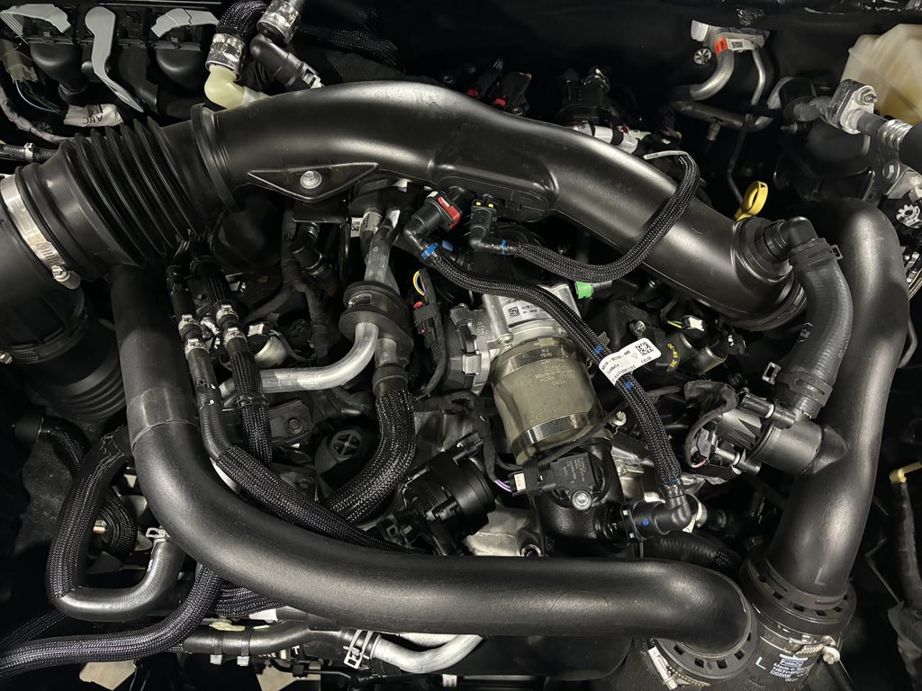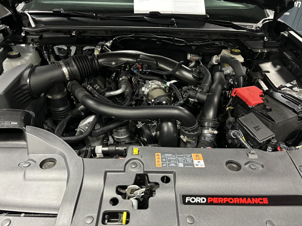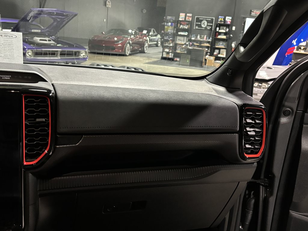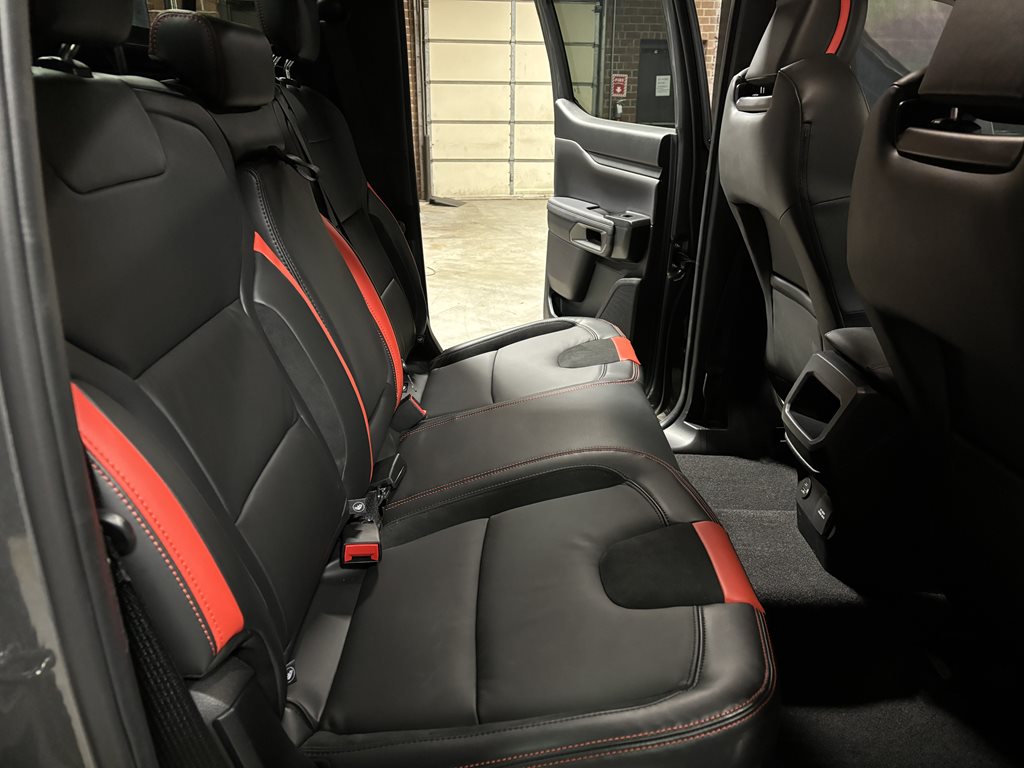 The previous owner invested in preserving its pristine condition, by adding a factory-quality spray-in bedliner, paint protection film, and a full ceramic coating to guard against scratches, chips, and environmental wear. Beneath the hood sits a potent 3.0L EcoBoost V6 engine producing 405 hp and 430 lb-ft of torque, backed by full-time four-wheel drive with Ford’s Terrain Management System™—complete with specialized modes for Baja runs and rock crawling—plus Fox™ Live Valve internal-bypass shocks and electronic-locking differentials front and rear. Inside, you’ll find a spacious SuperCrew cabin outfitted with heated leather-trimmed seats, dual-zone climate control, and SYNC® 4 infotainment featuring a 12″ touchscreen, wireless Apple CarPlay®/Android Auto™, and a B&O® premium audio system. Advanced amenities such as remote start, adaptive cruise control, and a head-up display ensure every drive is comfortable and connected.