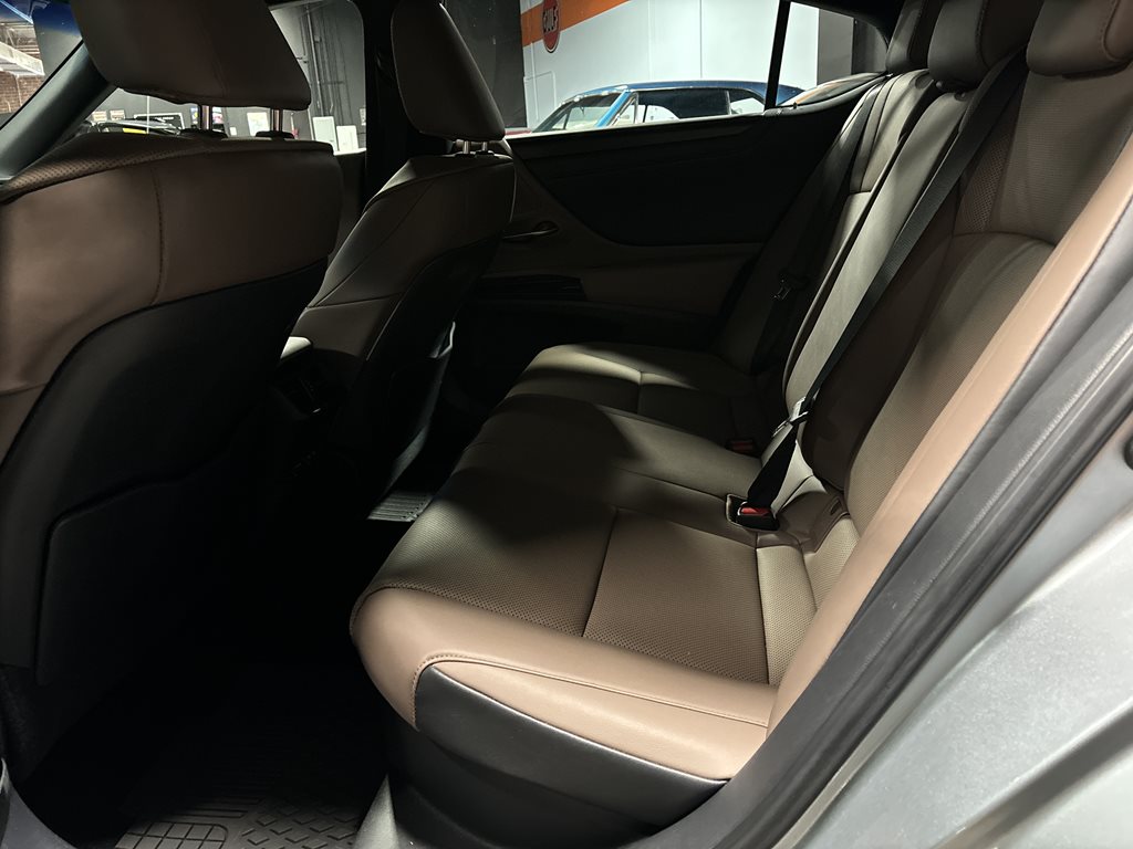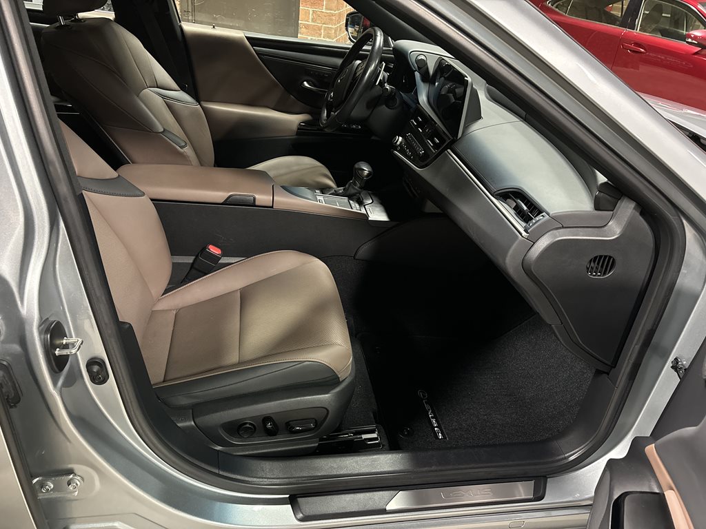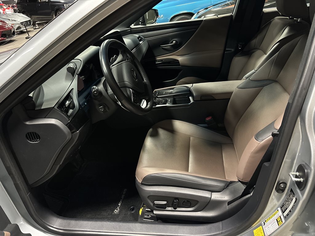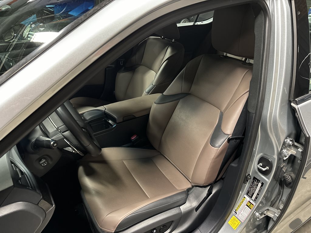 The 2022 Lexus ES 300h in Iridium exterior is a luxurious and meticulously crafted hybrid sedan that delivers an exceptional combination of comfort, performance, and advanced technology. This vehicle features a sophisticated 2.5-liter hybrid powertrain with 215 horsepower system output, paired with a smooth continuously variable transmission and front-wheel drive, providing both efficiency and a refined driving experience. The exterior showcases sleek LED headlamps, self-leveling headlights, fog lights, and elegant alloy wheels that complement the stylish Iridium finish. Inside, the cabin offers NuLuxe-trimmed seats with 10-way power adjustments, dual-zone climate control, rear ventilation ducts, and thoughtful comfort features such as a folding rear armrest and leather steering wheel. Technology and entertainment are seamlessly integrated with Apple CarPlay, Android Auto, a premium 10-speaker Pioneer sound system, USB connectivity, and a rearview camera, ensuring a connected and enjoyable driving experience. Safety is a priority with the Lexus Safety System+ 2.5, which includes pre-collision with pedestrian detection, adaptive cruise control, lane departure alert with steering assist, blind spot monitoring, rear cross-traffic alert, and a full suite of airbags and stability systems. This 2022 ES 300h is in excellent condition and represents a perfect balance of luxury, efficiency, and advanced features, making it an ideal choice for discerning drivers seeking a premium hybrid sedan.