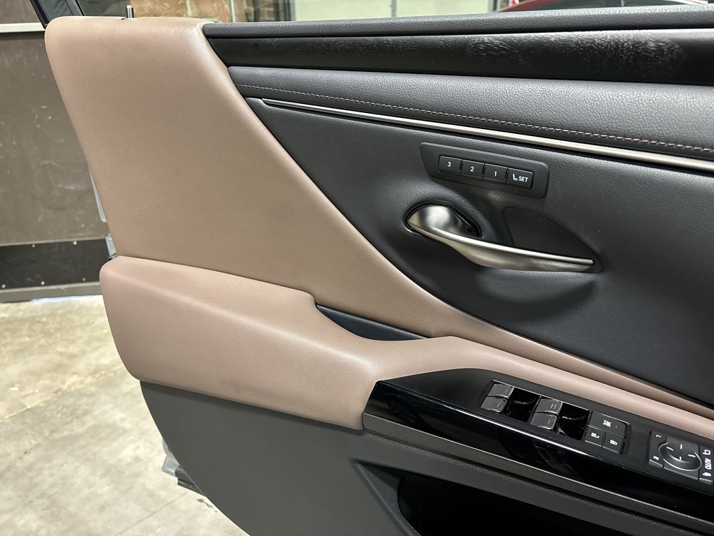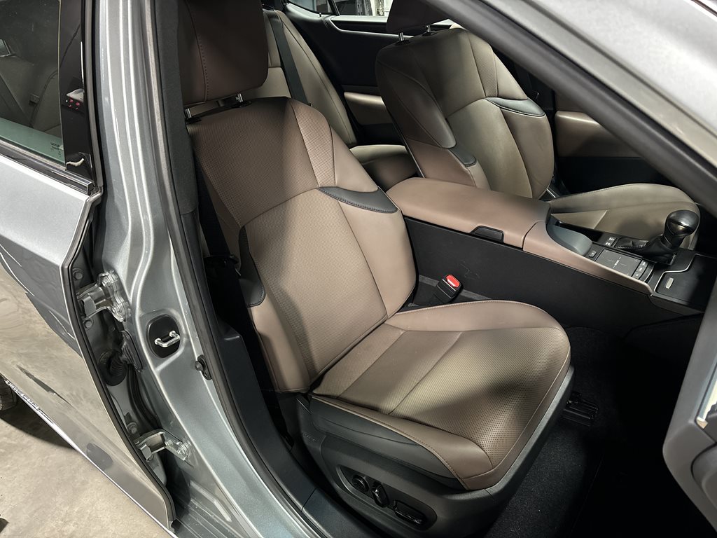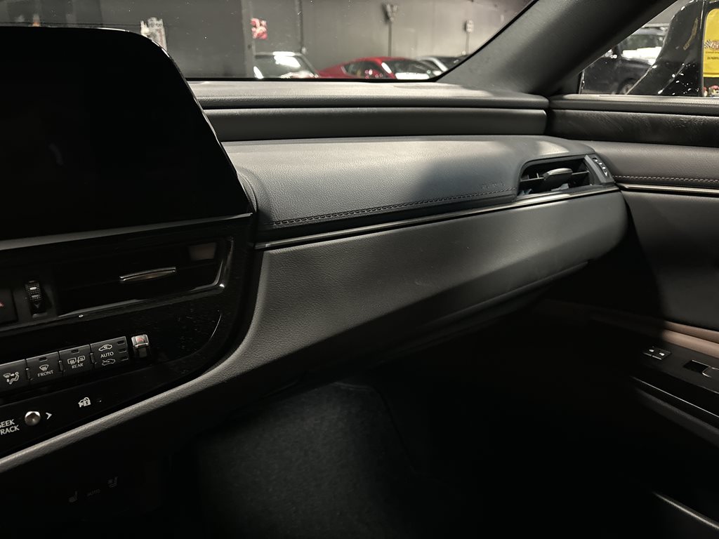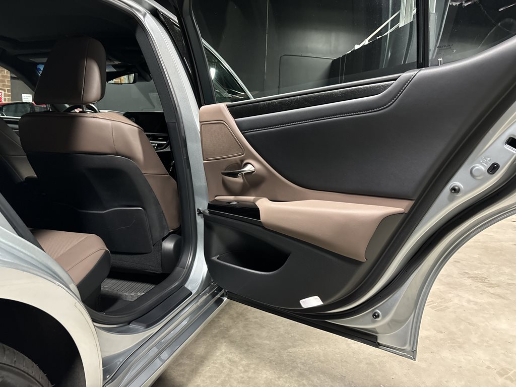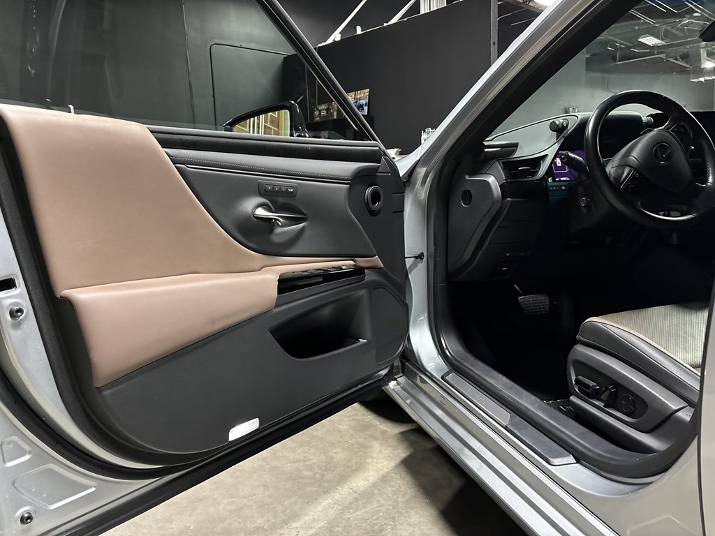 The 2022 Lexus ES 300h in Iridium exterior is a luxurious and meticulously crafted hybrid sedan that delivers an exceptional combination of comfort, performance, and advanced technology. This vehicle features a sophisticated 2.5-liter hybrid powertrain with 215 horsepower system output, paired with a smooth continuously variable transmission and front-wheel drive, providing both efficiency and a refined driving experience. The exterior showcases sleek LED headlamps, self-leveling headlights, fog lights, and elegant alloy wheels that complement the stylish Iridium finish. Inside, the cabin offers NuLuxe-trimmed seats with 10-way power adjustments, dual-zone climate control, rear ventilation ducts, and thoughtful comfort features such as a folding rear armrest and leather steering wheel. Technology and entertainment are seamlessly integrated with Apple CarPlay, Android Auto, a premium 10-speaker Pioneer sound system, USB connectivity, and a rearview camera, ensuring a connected and enjoyable driving experience. Safety is a priority with the Lexus Safety System+ 2.5, which includes pre-collision with pedestrian detection, adaptive cruise control, lane departure alert with steering assist, blind spot monitoring, rear cross-traffic alert, and a full suite of airbags and stability systems. This 2022 ES 300h is in excellent condition and represents a perfect balance of luxury, efficiency, and advanced features, making it an ideal choice for discerning drivers seeking a premium hybrid sedan.
