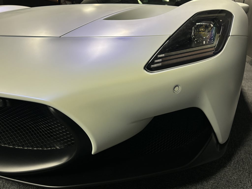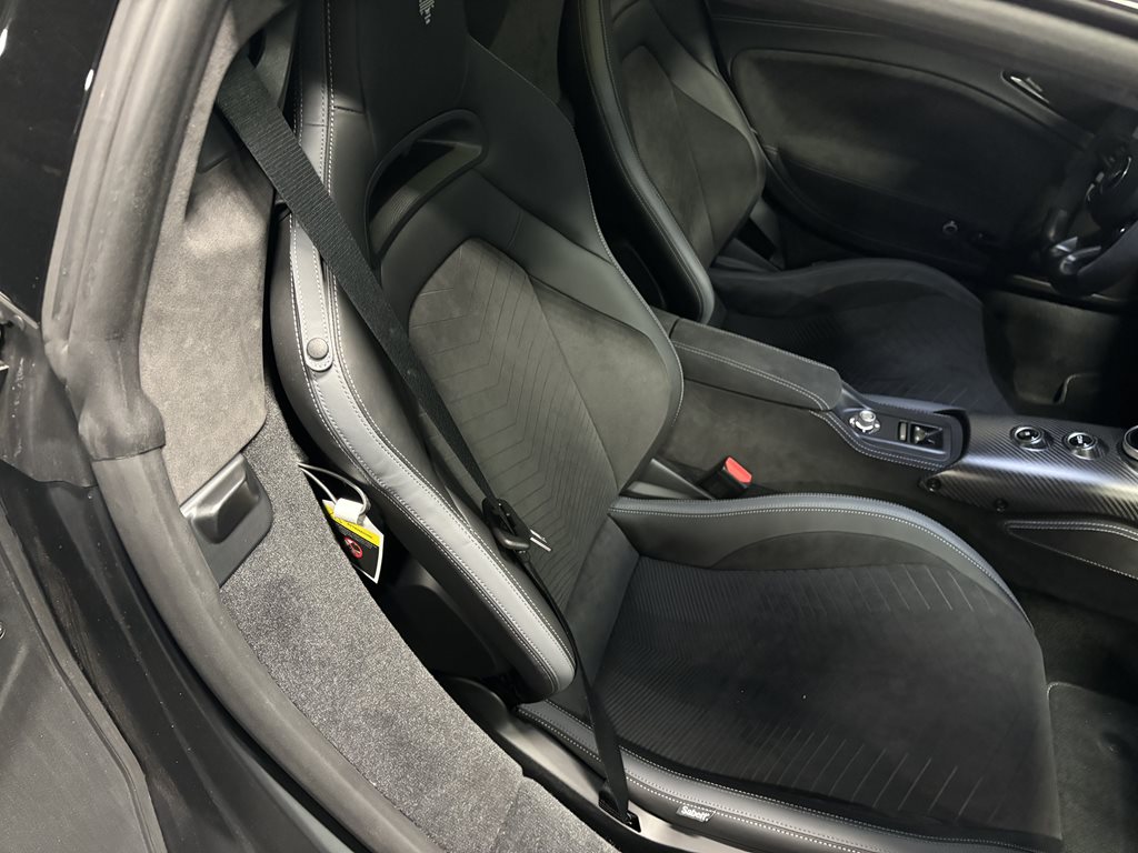 Inside, the MC20 Cielo is a driver-focused cockpit wrapped in luxurious Nero and Grigio leather with contrast stitching and Alcantara inserts. The interior is clean and minimalist, with intuitive digital controls including a 10.25-inch touchscreen infotainment system and a matching digital driver display. Features like wireless Apple CarPlay and Android Auto, a Sonus Faber premium audio system, and heated, power-adjustable sport seats ensure that performance doesn’t come at the cost of comfort. Carbon fiber paddle shifters, metallic trim, and available ambient lighting further enhance the premium experience.