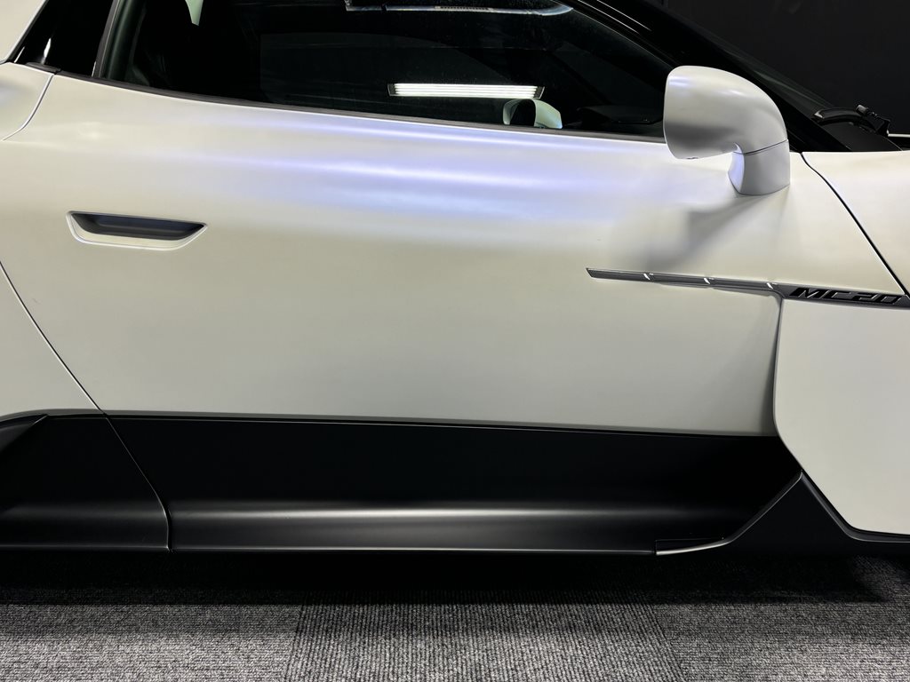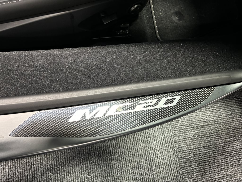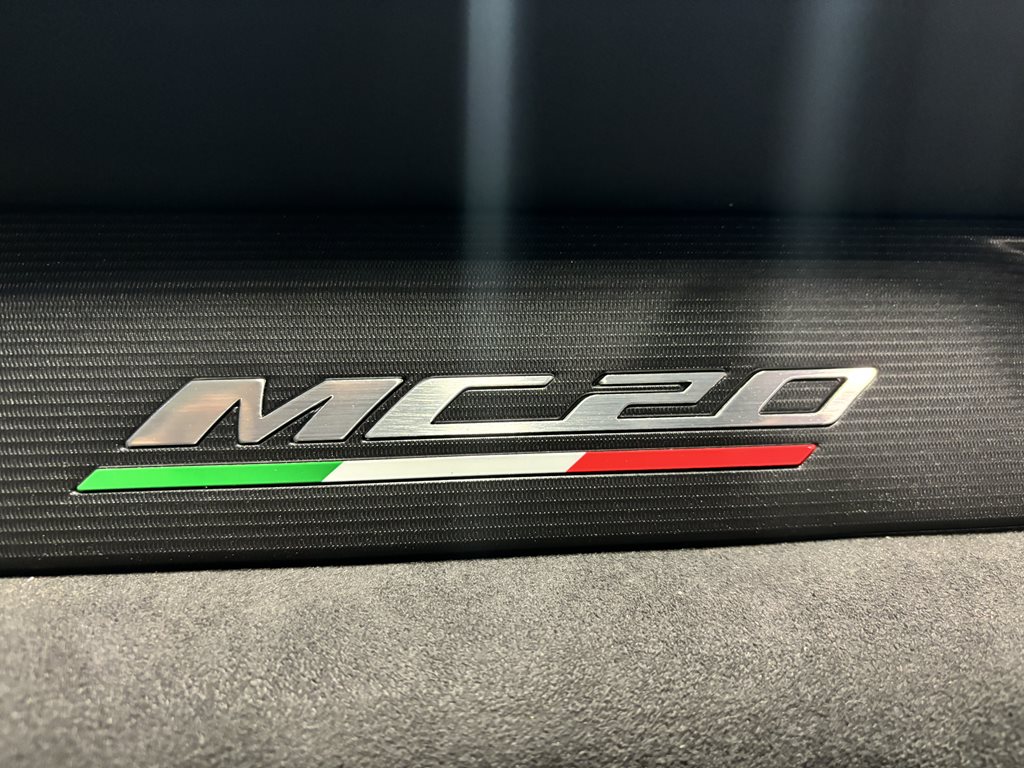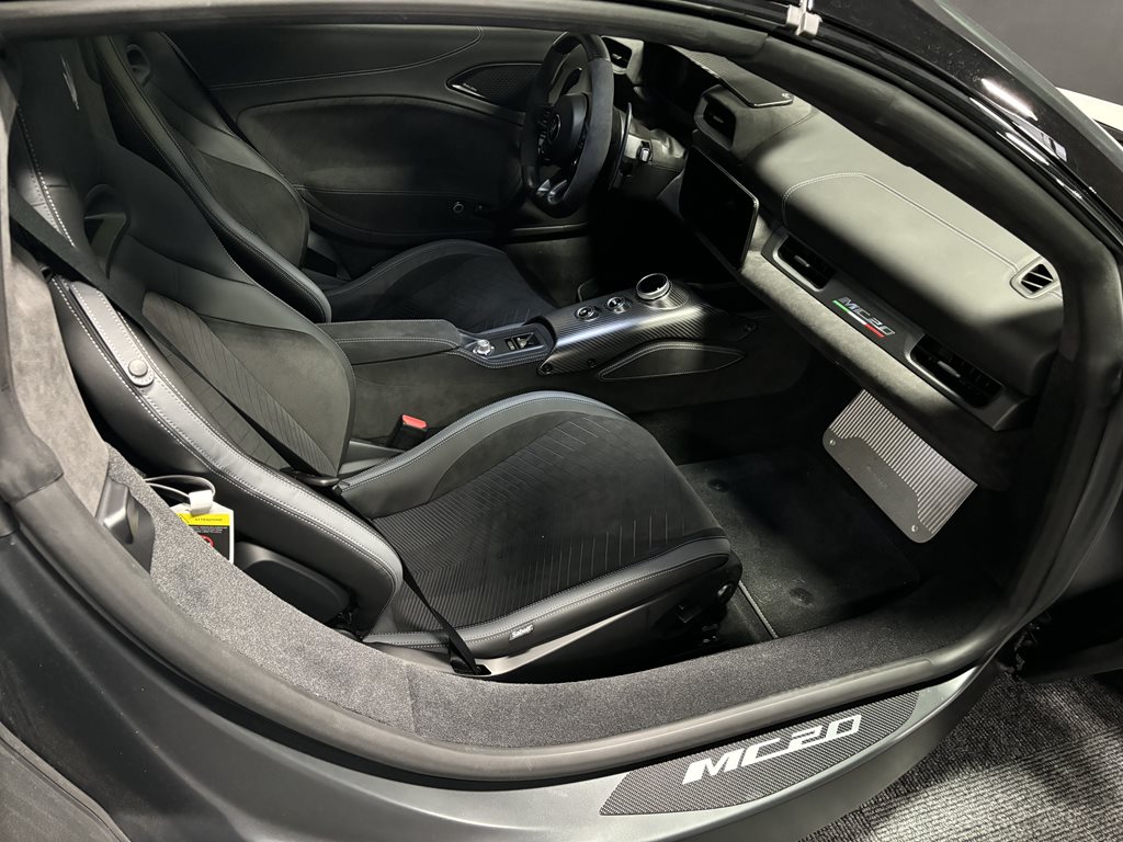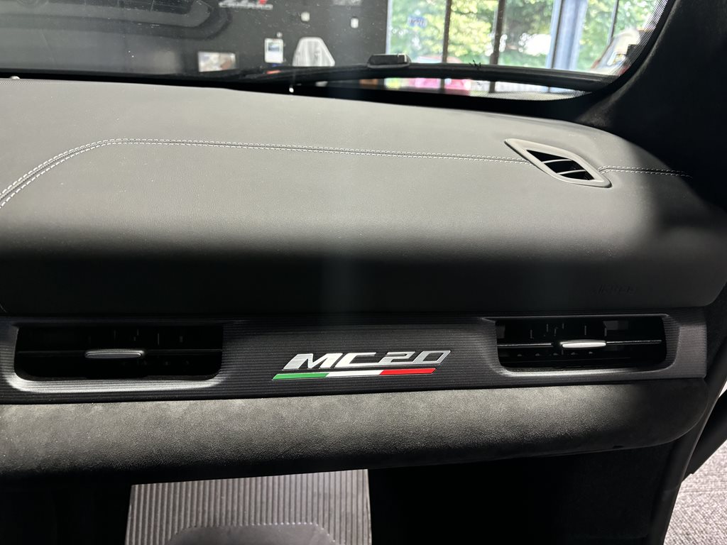 On the exterior, this MC20 Cielo is equipped with 20-inch diamond-cut alloy wheels, LED headlamps and taillights, a dual exhaust system, and available carbon fiber accents including the rear diffuser and side skirts. The design is both aerodynamic and artful—every vent and curve serves a performance purpose while delivering unmistakable Italian flair.