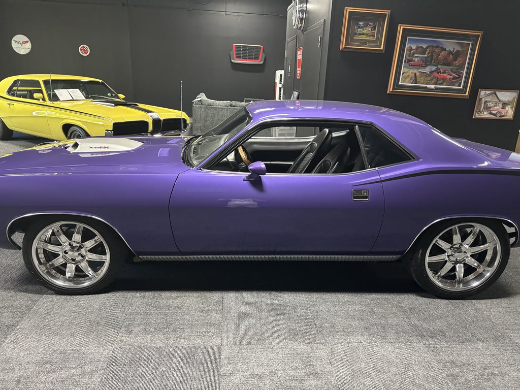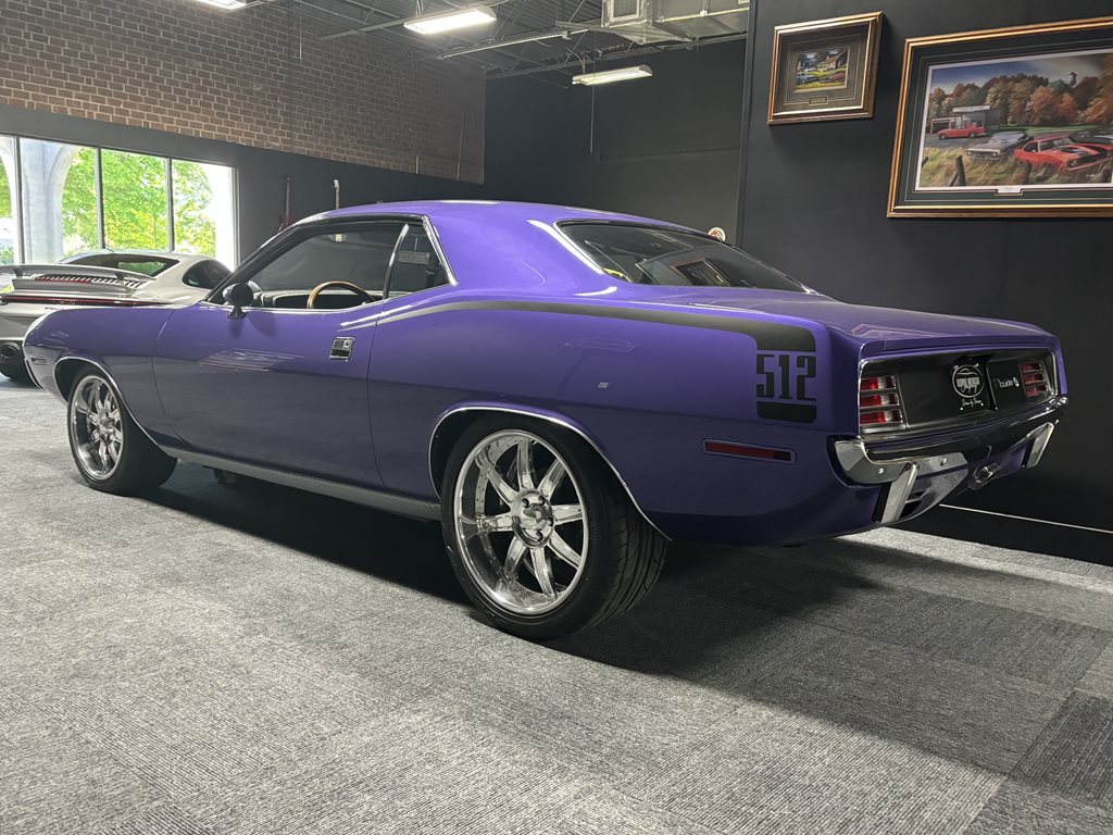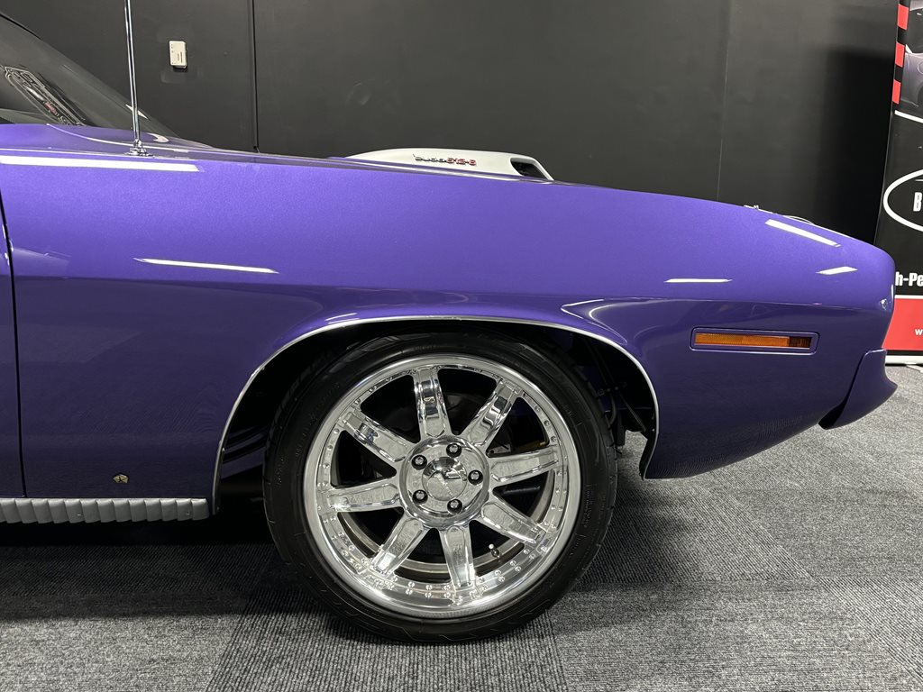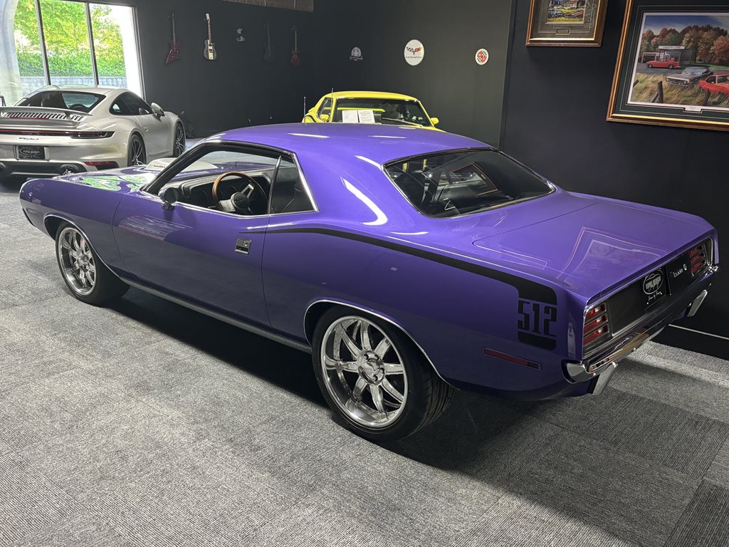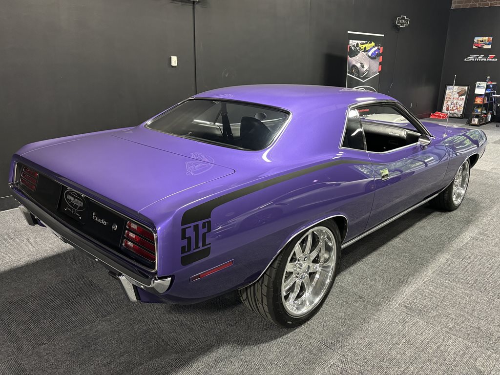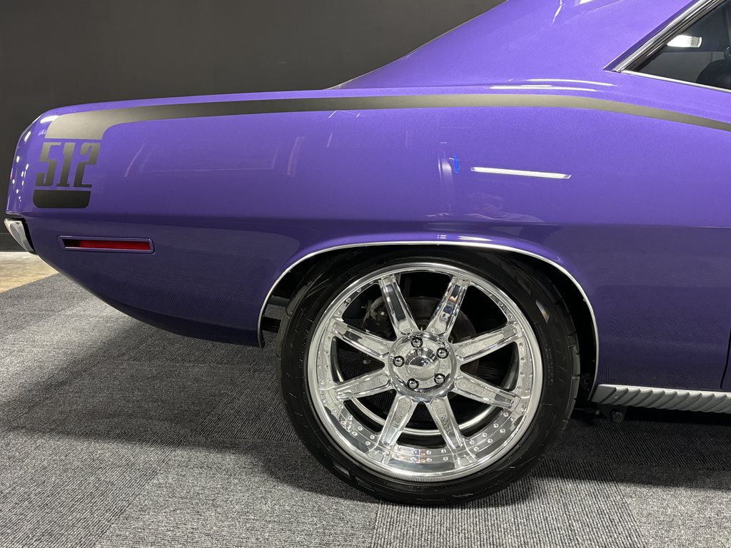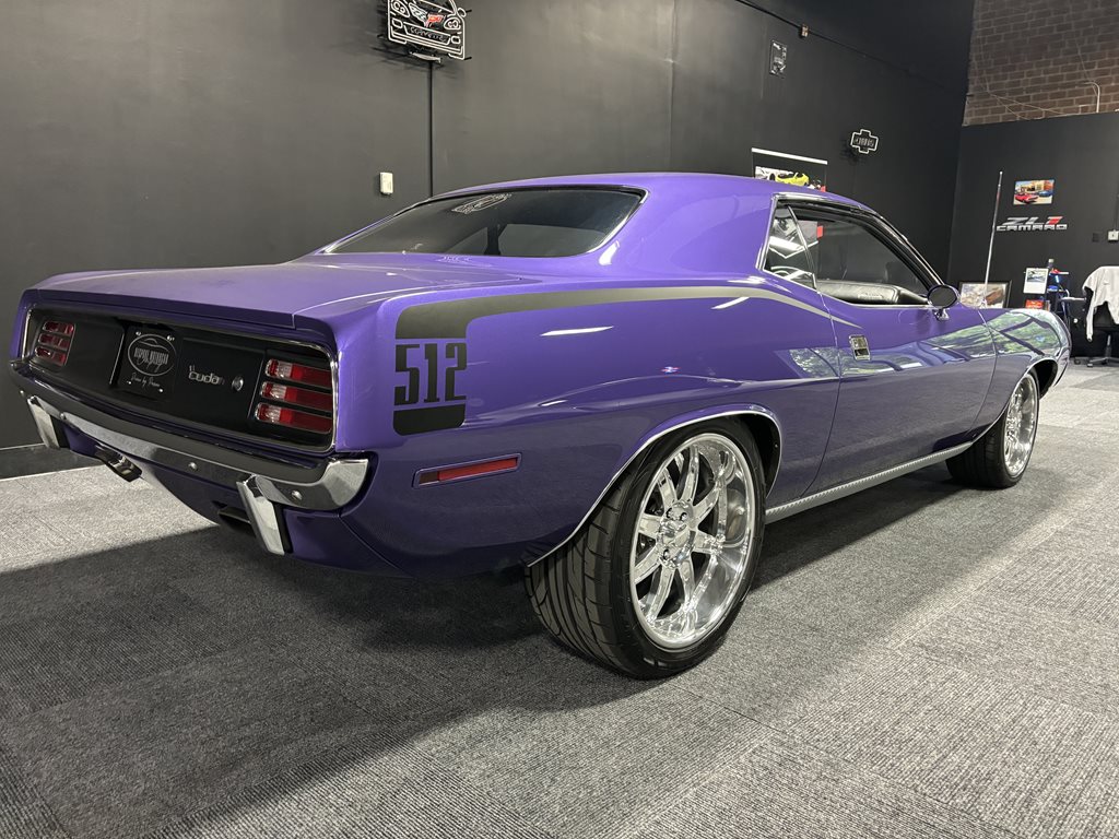 Under the hood, you'll find a 440 big block engine, bored and stroked to a massive 512 cubic inches, delivering breathtaking horsepower and torque. The build also includes significant upgrades to the wheels, brakes, and suspension, ensuring not only outstanding performance but also superior handling and ride quality. With only 4,392 miles driven since its completion, this restomod Barracuda is practically brand new and ready to be enjoyed.