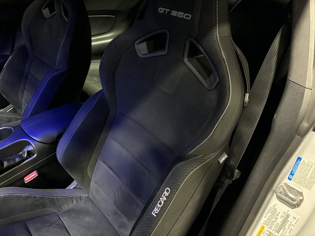 Inside, the GT350 offers a no-nonsense, driver-focused cockpit with Recaro sport seats, premium audio, and a distinctive Shelby dashboard. Every detail is designed to enhance your driving experience, whether you’re behind the wheel at full throttle or enjoying a relaxed cruise.