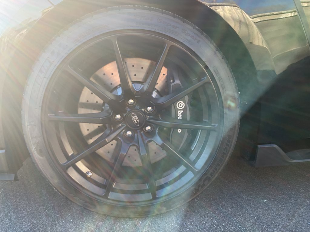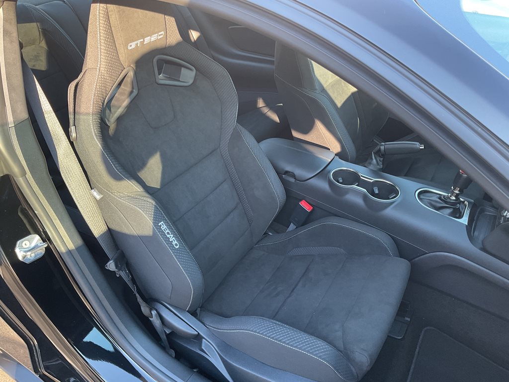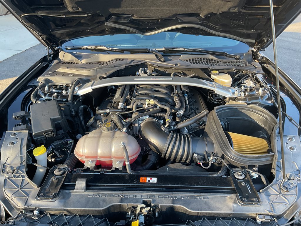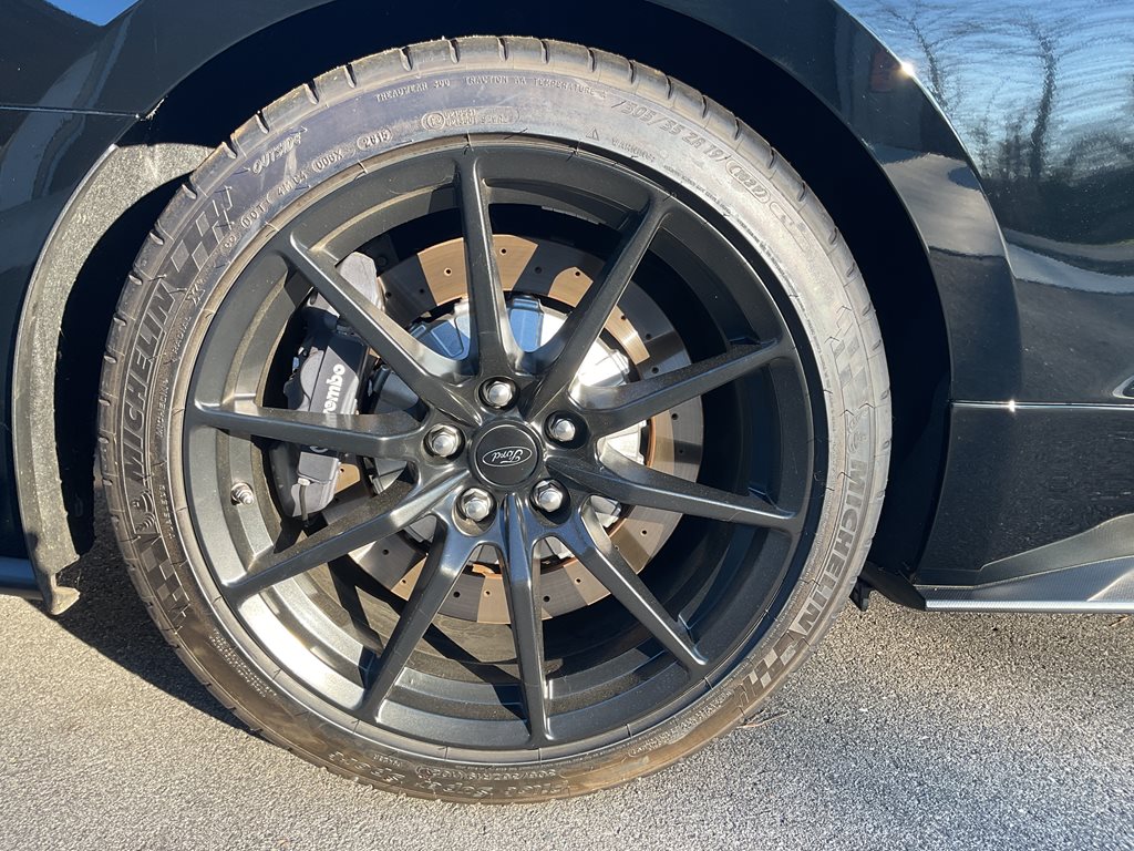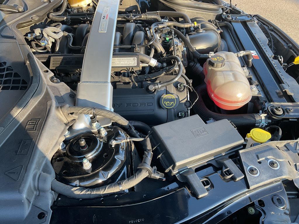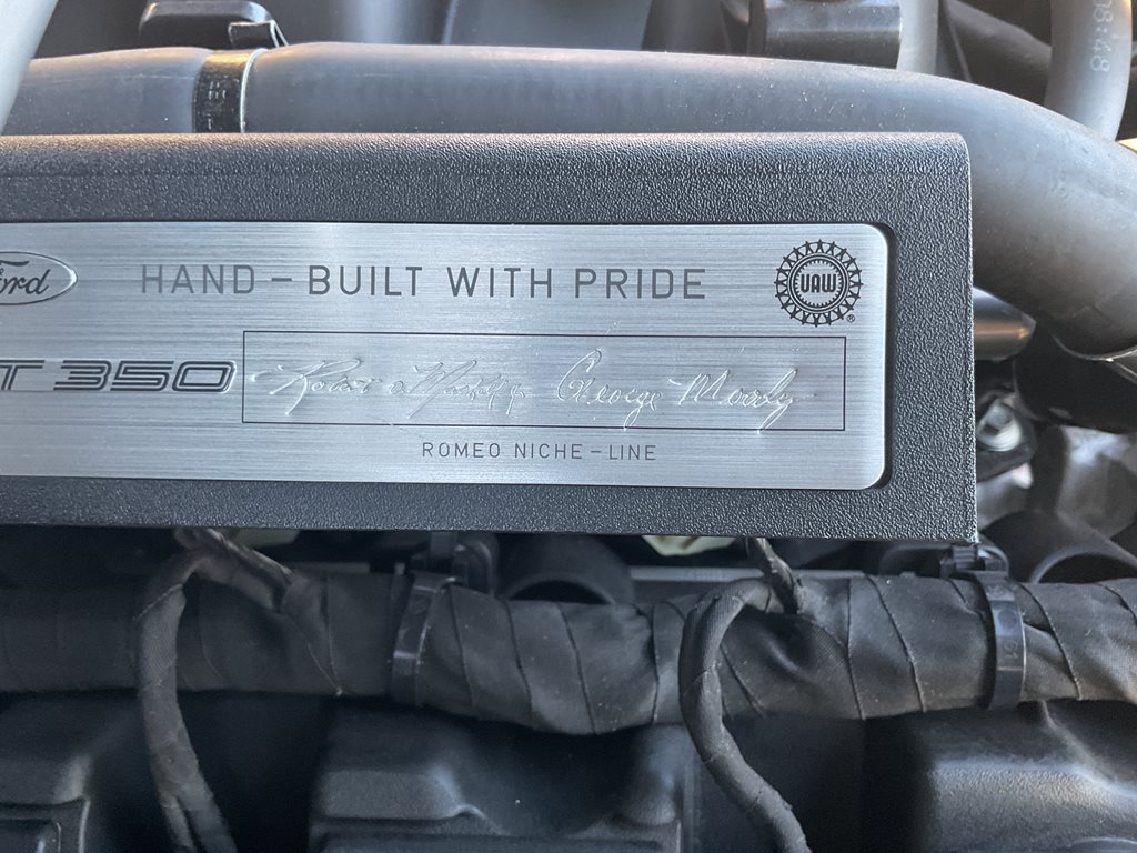 Powering the GT350 is Ford’s legendary 5.2 liter flat plane crank V8 engine producing 526 horsepower and 429 lb ft of torque, paired with a precise 6 speed Tremec manual transmission that delivers an engaging and authentic driving experience. Advanced performance technologies such as MagneRide adaptive suspension, Brembo high performance brakes, selectable drive modes, launch control, and a limited slip differential allow the driver to fully enjoy the car’s incredible handling and track-ready performance. The flat plane crank design gives the engine a distinctive high-revving character and unmistakable exhaust note that sets the GT350 apart from traditional V8 Mustangs.