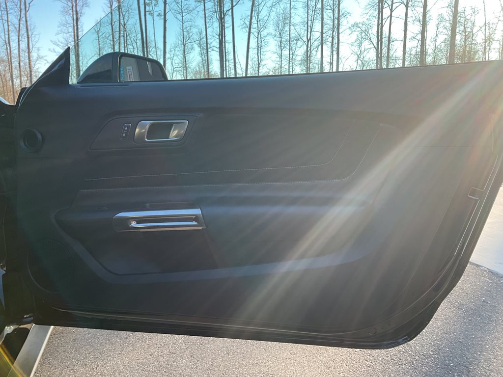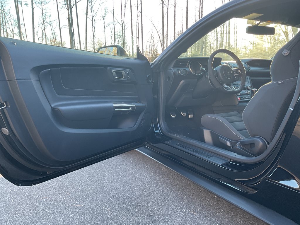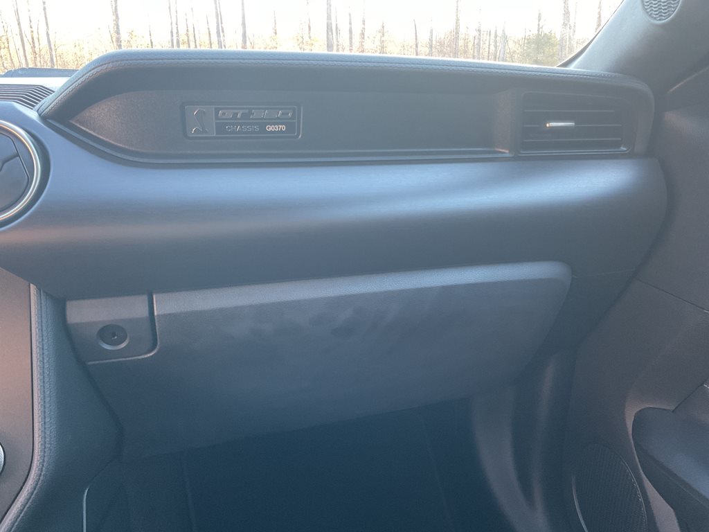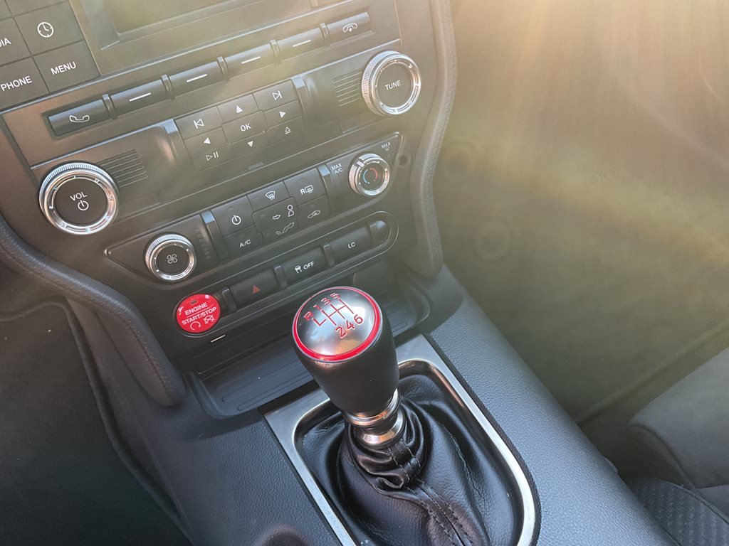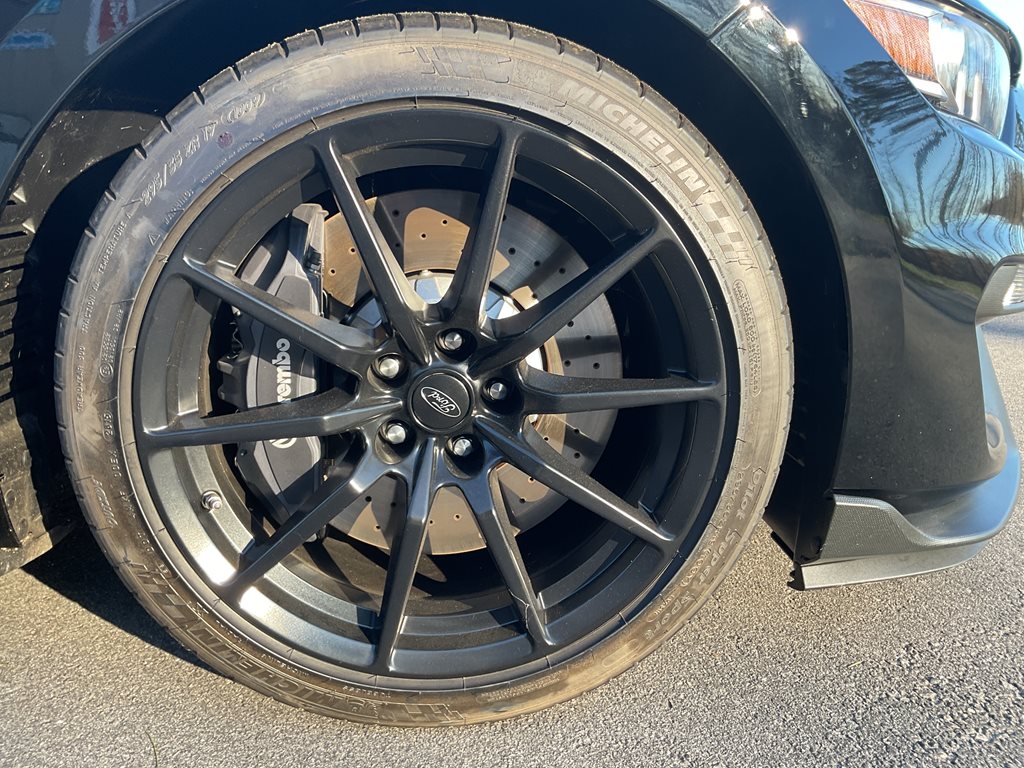 Inside, the cabin blends performance styling with premium comfort through leather and Miko suede sport seats, aluminum interior accents, and a driver focused cockpit. A premium sound system and performance data display further enhance the driving experience, while the unique Shelby gauges and flat bottom steering wheel reinforce the car’s motorsport inspired design.