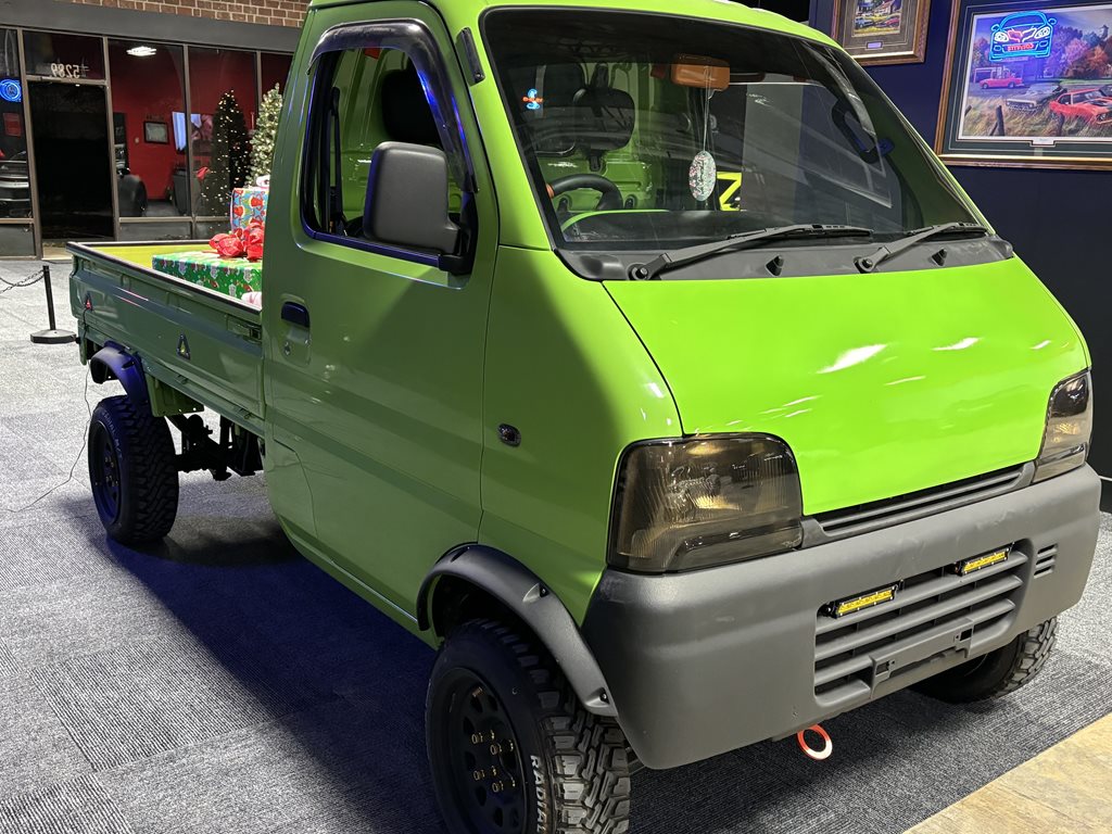 This 1999 Suzuki Carry 4x4 is a truly one-of-a-kind custom build, blending functionality with striking style. Powered by a reliable fuel-injected engine, this compact and rugged truck is built to tackle a variety of terrains with ease, whether you're navigating the city streets or venturing off-road.